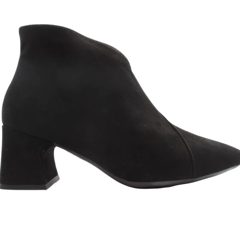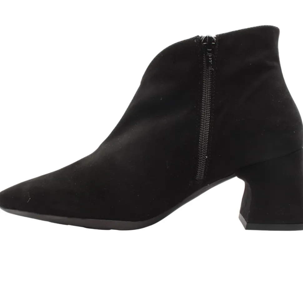 Stunning ankle boots from the Wonders Shoes crafted in spain. These dressy boots have a gorgeous black suede upper with a side zip closure.The block heel & memory gel insole add to the comfort of the boots.The boot has a sllight V cut design to the front of the boot.