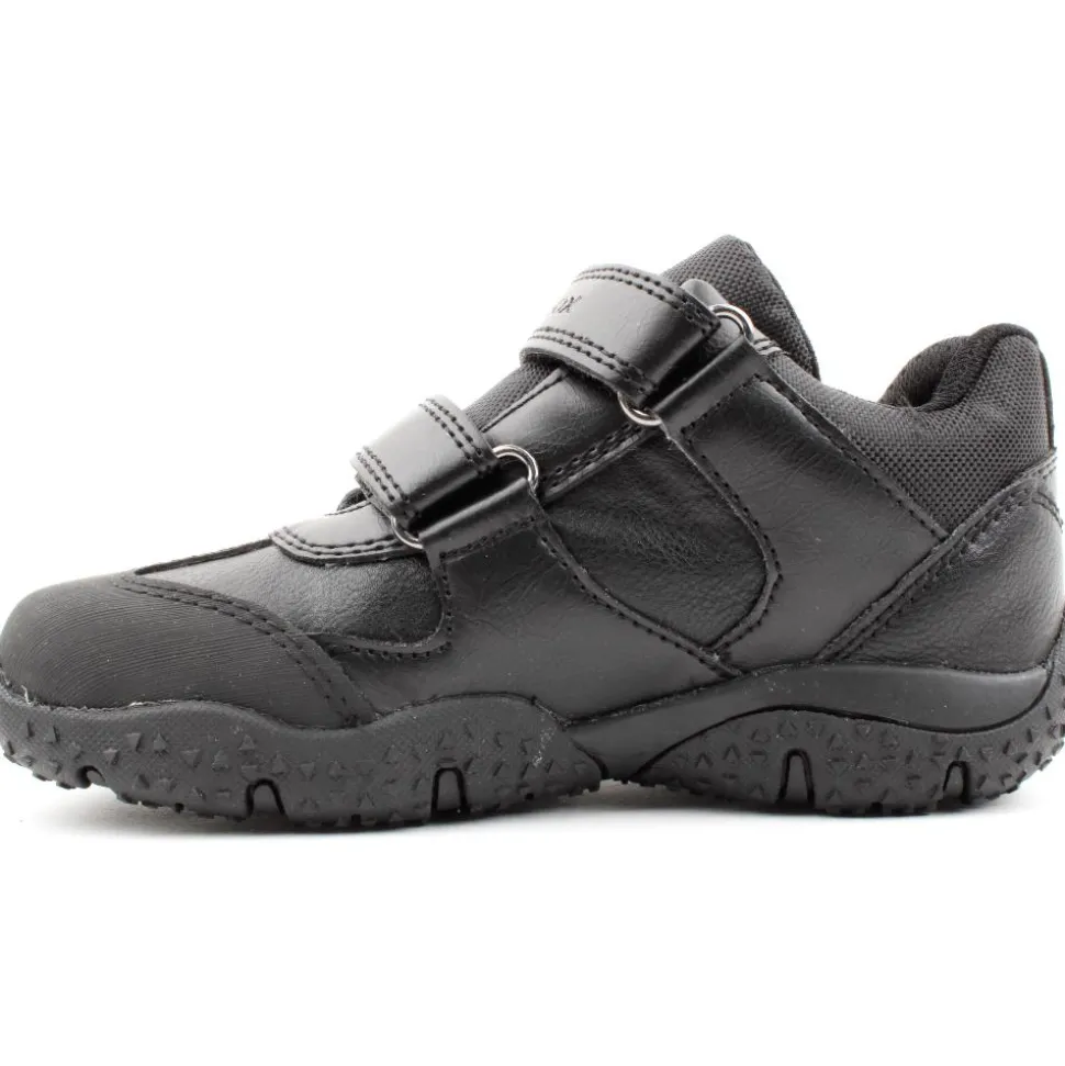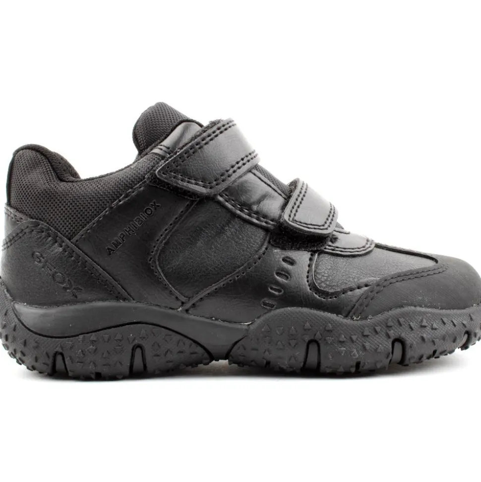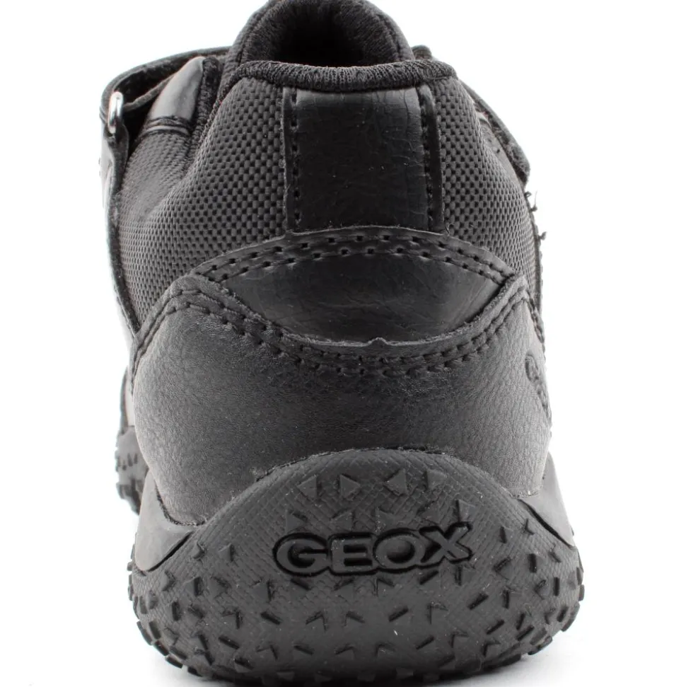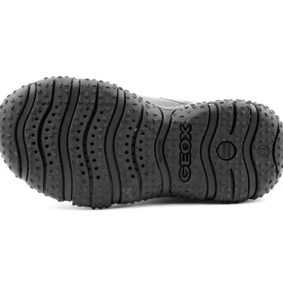 Boys sport Inspired shoe from Geox. This shoe has a black upper with a cushioned tongue and heel. A toe bumper helps to keep the front of the runner from becoming scuffed. This style was designed using Geox Respira technology, this ensures the runner is breathable, anitshock & chromium free. The shoe was also designed with Amphibiox Tex technology which ensures this shoe is shower-proof.