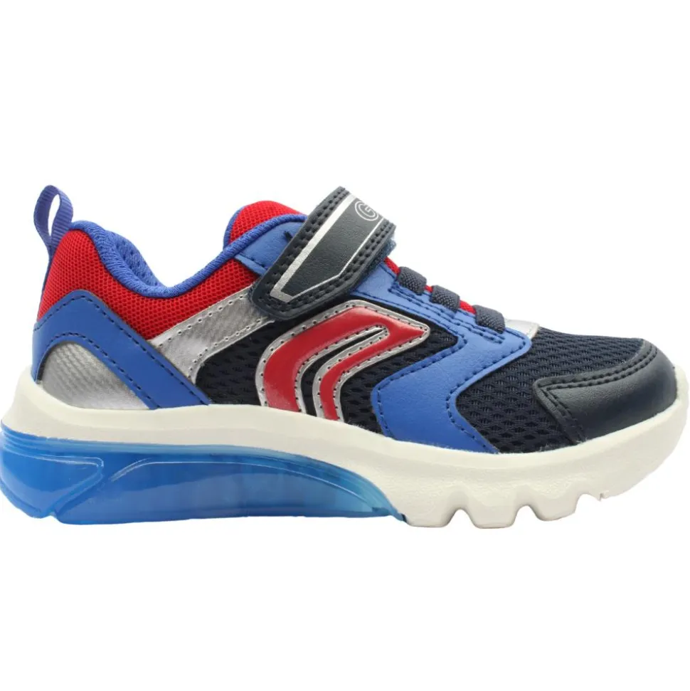 Get ready to shine with the Geox J45LBC Trainer, a stylish and high-performance sneaker designed for active kids. Featuring a navy upper with bold red and blue detailing, this trainer is built for comfort, durability, and fun. Flashing Lights in Outsole which Light up with every step and includes an on/off button for control. Elastic Laces & Single Velcro Strap which ensures a secure and adjustable fit for extra support. Breathable, Removable Insole which keeps feet fresh and comfortable, plus it’s easy to clean. Durable & Flexible Outsole which provides excellent grip and shock absorption for all-day play. Geox Respira Technology which enhances airflow to maintain the perfect foot climate.