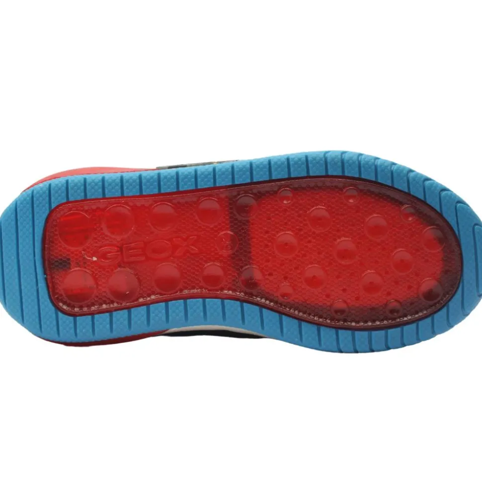 Boys runners from Geox shoes with a light up sole. Designed with a striking truck graphic on the side, complete with dynamic fire-inspired accents blazing behind it. This shoe has a lightweight upper.These shoes provide exceptional comfort and breathability, ensuring your child’s feet stay cool and supported. The standout feature is the light-up sole, which flashes brilliantly with every step and includes an on/off switch on the side of the shoe.