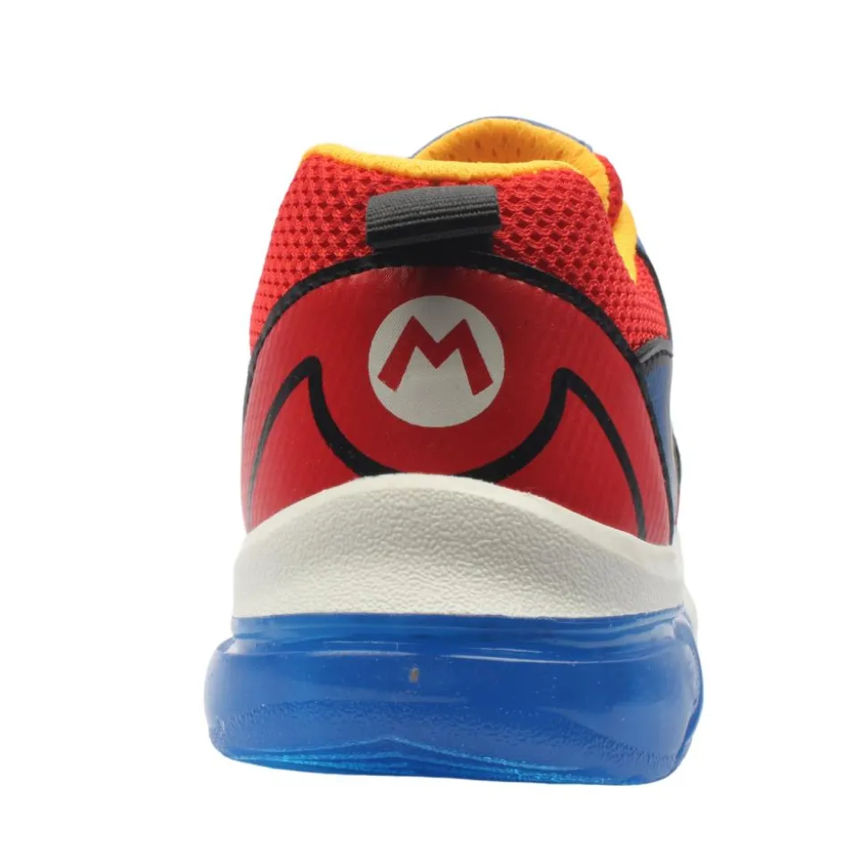 Boys runners from Geox shoes with a light up sole. Designed with a Super Mario upper.These shoes provide exceptional comfort and breathability, ensuring your child’s feet stay cool and supported. The standout feature is the light-up sole, which flashes brilliantly with every step and includes an on/off switch on the side of the shoe.