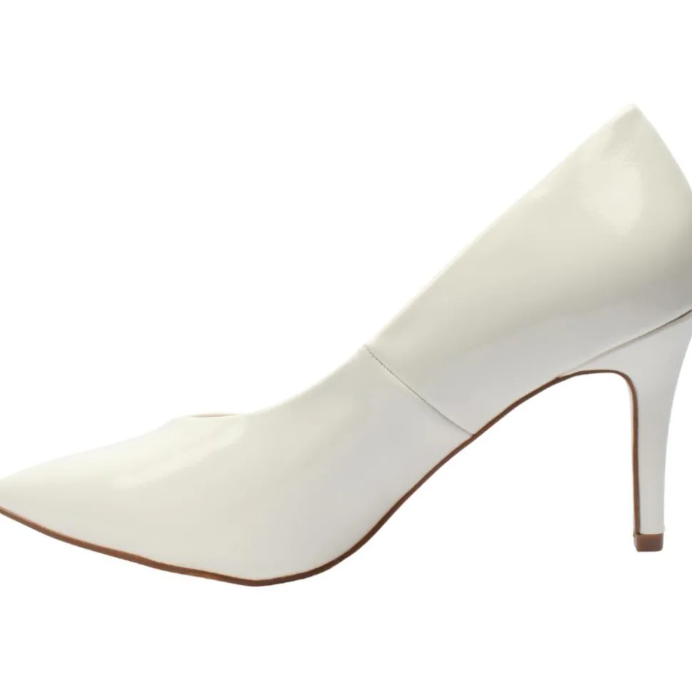 Classic court shoe from Kate Appleby. These Kate Appleby court shoes have a soft cream patent upper with a pointed toe & gold Kate Appleby branding on the side.