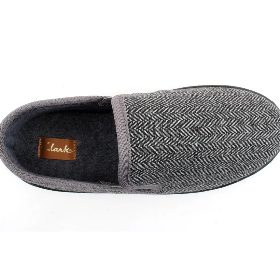 Mens Slippers from Clarks Shoes. A classic slip on style with elasticated panels to aid on/off with ease.A lightweight grippy soles give a flexible feel and reliable traction.