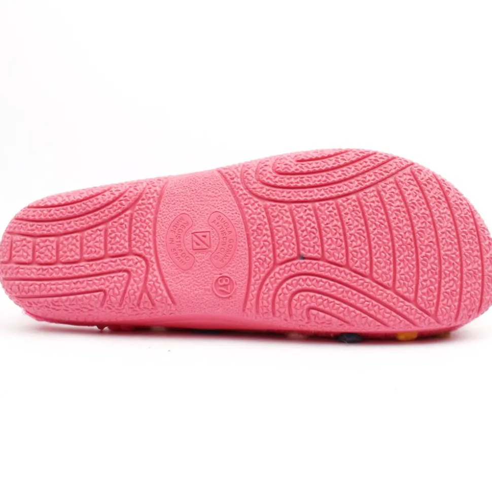 Mule from Lunar Slippers. This ladies slipper style a pink upper with colourful dots along the upper. Cosy fleece lining will keep feet warm on cold nights.