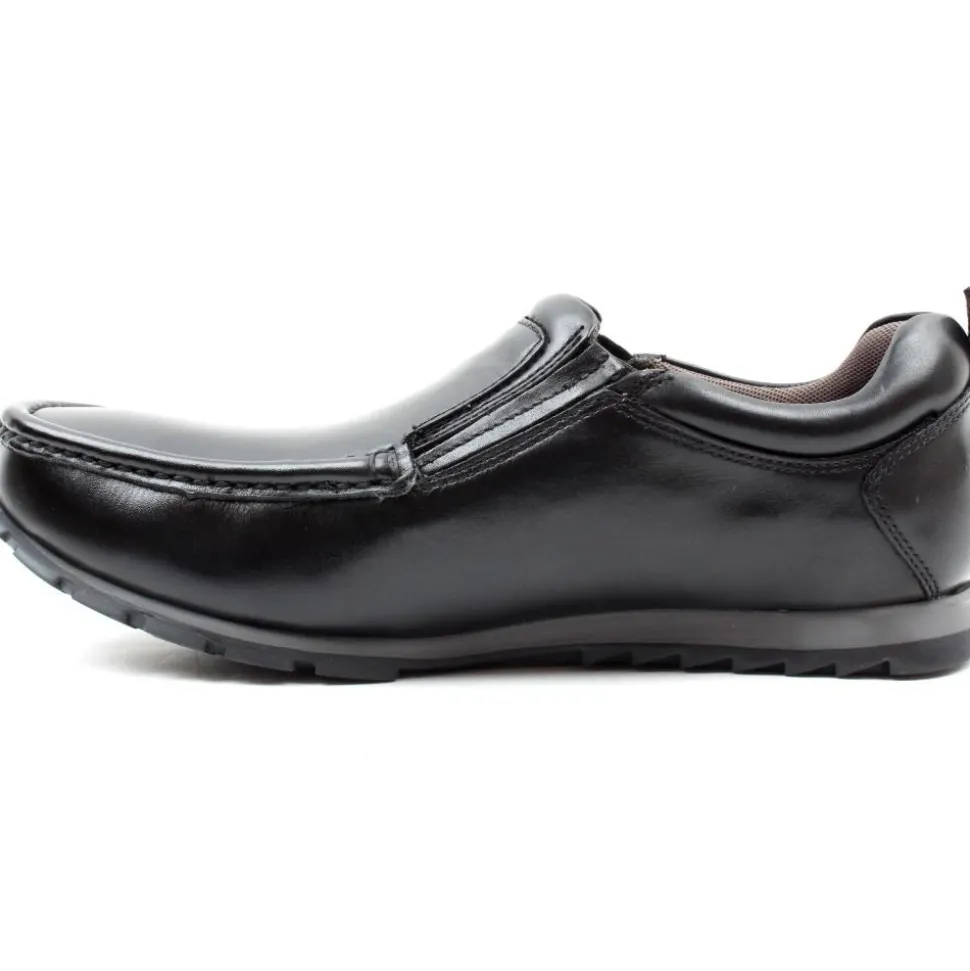 Boys back to school shoes from the Dubarry AV8 collection. A soft black leather slip on style with two elasticated gussets which allow for easy on/off. A lightweight and flexible shoe perfect for school.