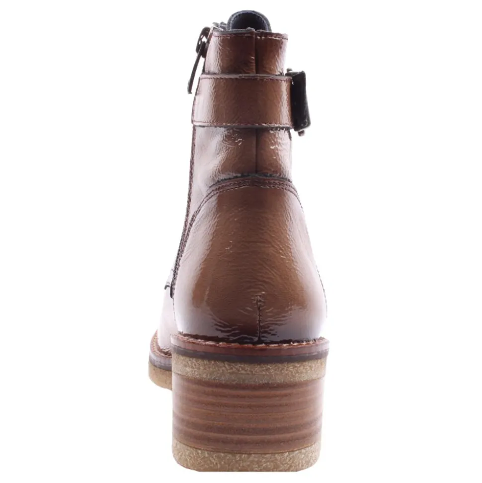 Ladies ankle boots from Dorking By Fluchos. These boots have a patent leather upper. They are ightweight and have a lace & zip closure for easy on/off. The buckle at ankle adds a touch of detail to the boots.