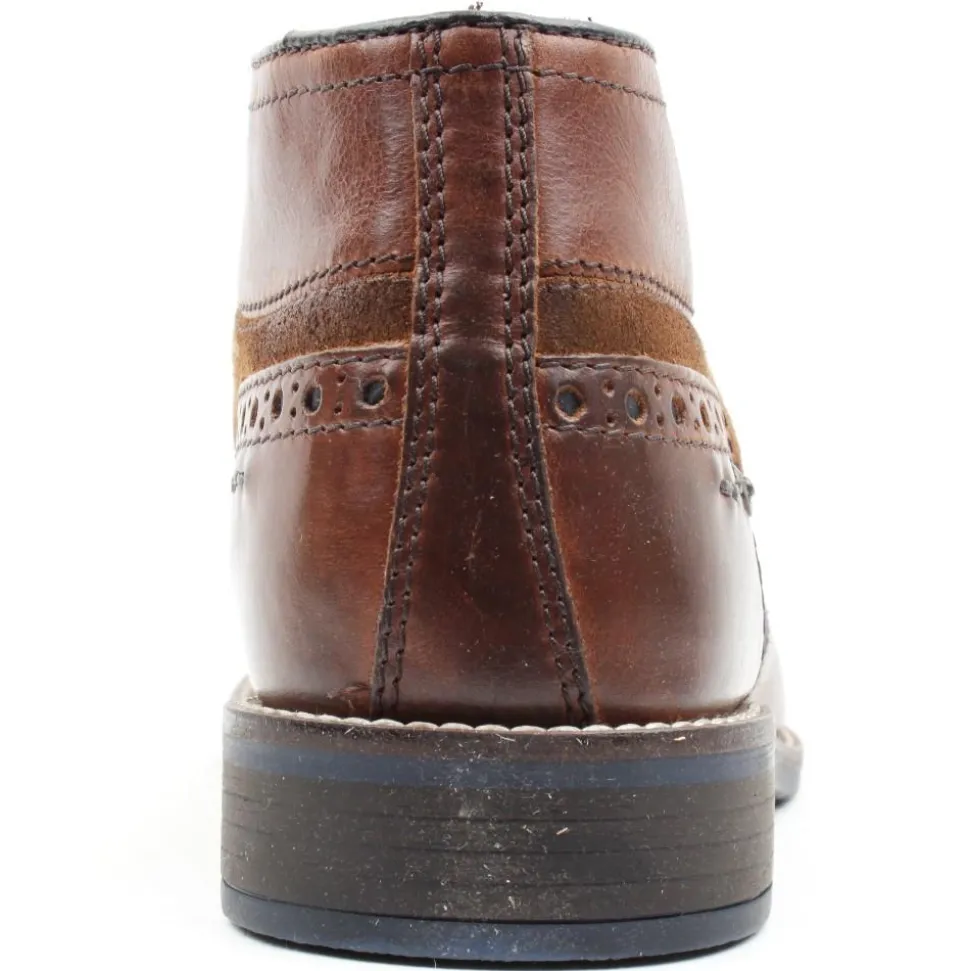 Mens boots from Dubarry of Ireland. This dressy/casual style has a soft tan leather upper with fine stitch and punched hole detailing and contrasting navy lace closure. Can be worn for formal or casual wear.