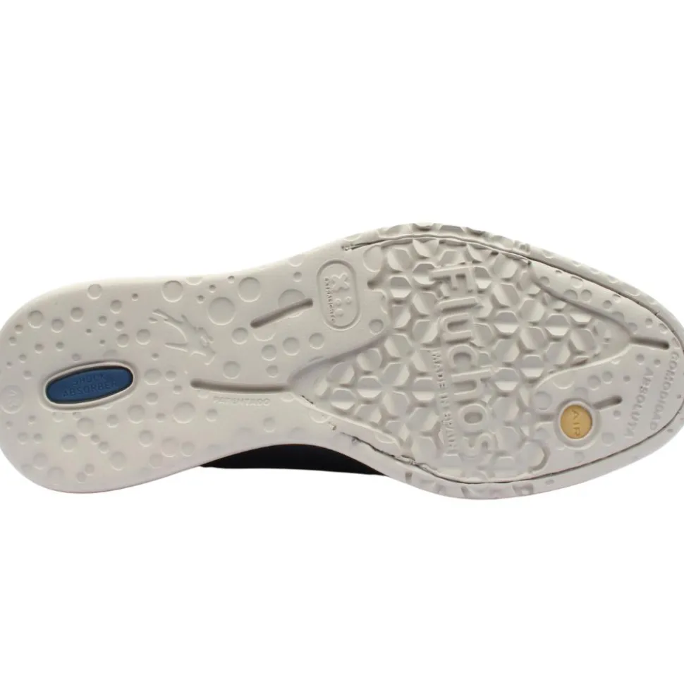 Casual Mens shoes from Fluchos Shoes. These Mens shoes have a soft navy leather upper with a alce closure for a secure fit.The extra light sole is equipped with Air and Shock technologies absorbing the impact of each step.The cushioned r emovable insole allows for a custom orthotic.