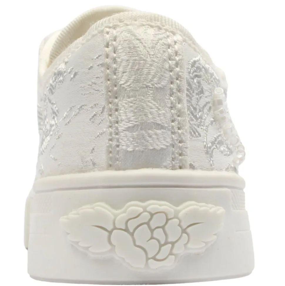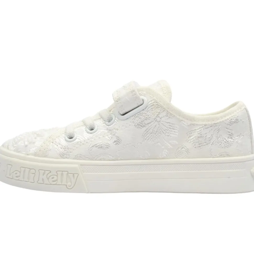 Kids girls shoes from Lelli Kelly’s shoes. Featuring a Velcro strap and elasticated lace for an adjustable fit. These shoes would be perfect for communions and occasion wear. The small beads throughout the shoe are a cute little detail to these shoes.