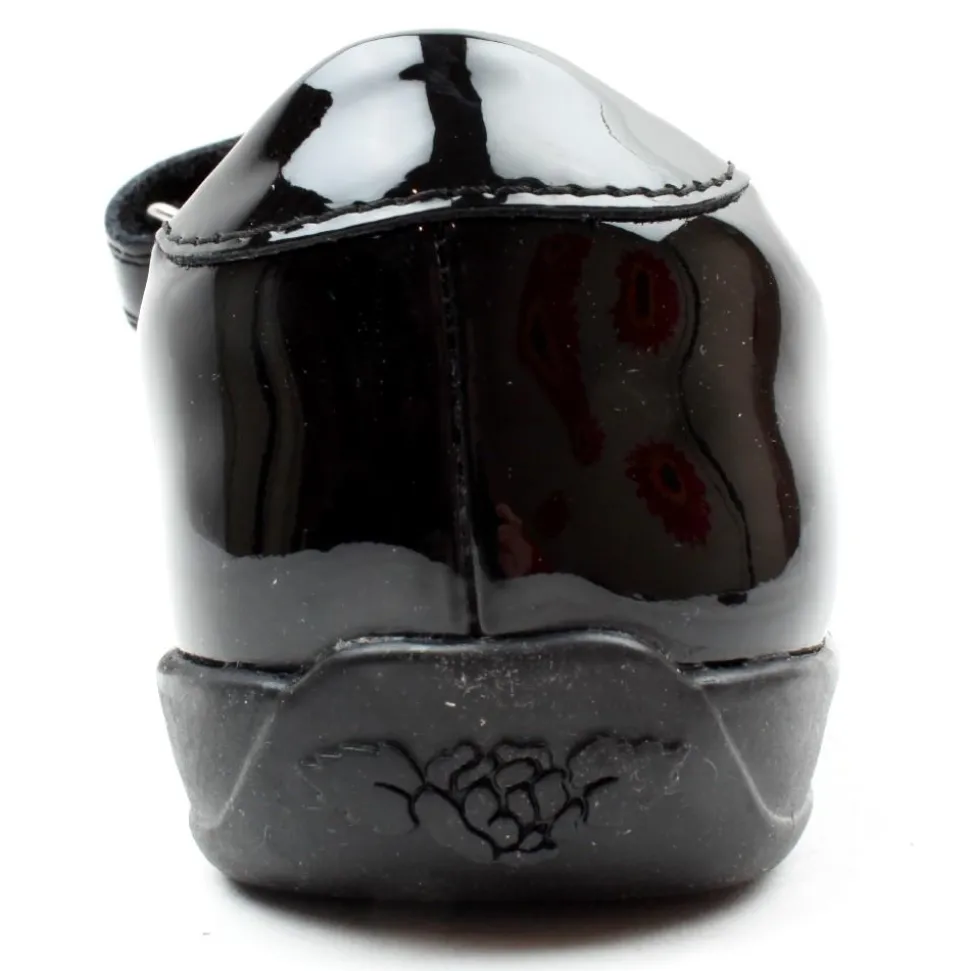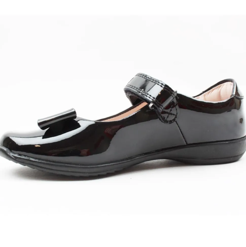 Cute school shoe from the Lelli Kelly range. This shoe comes in black patent leather with a black patent bow on front. Suitable as Back to School Shoes.