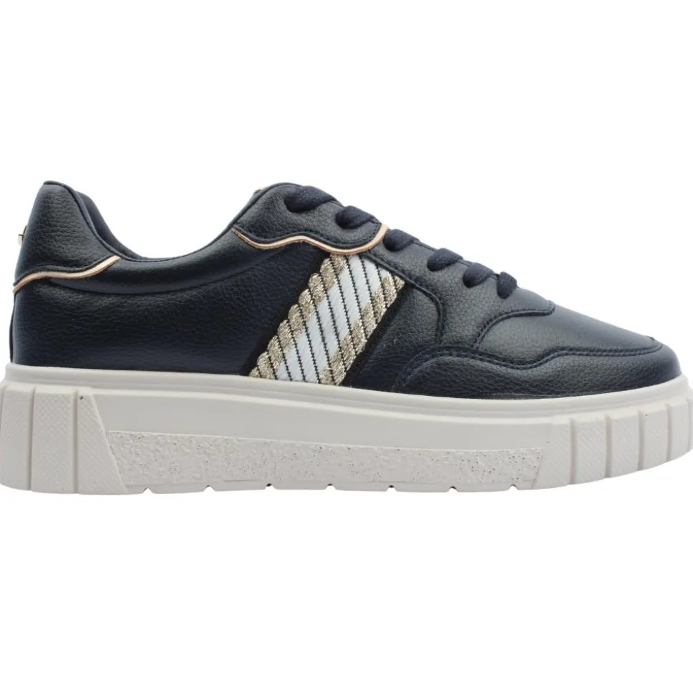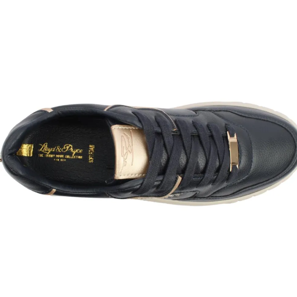 The Lloyd & Pryce Davies Hunt ladies trainers in navy is the perfect blend of style and comfort. Featuring a trendy platform outsole, these trainers offer a subtle height boost while ensuring all-day comfort with their soft foam insole. The sleek navy upper adds a modern touch, making it versatile enough for casual outfit. Designed for both fashion and functionality, these trainers are ideal for women seeking effortless style with superior comfort.