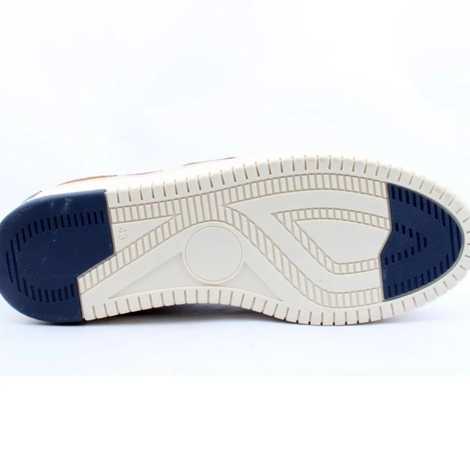 Mens casual shoes from Tommy Bowe Lloyd & Pryce collection . These Tommy Bowe shoes have a rich tan leather upper with navy detailing and sits upon a beige sole unit. This style has a removable insole for those who need an orthotic.