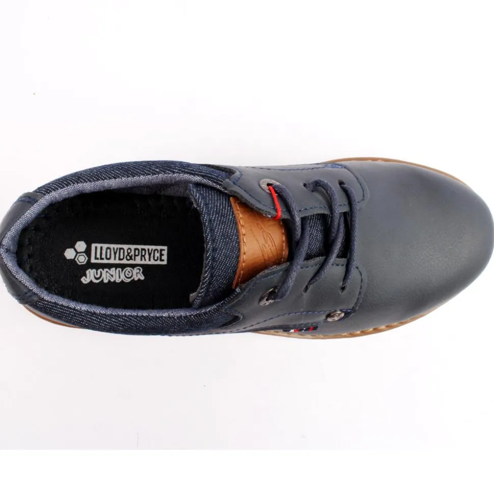 Boys dressy shoes from the Lloyd & Pryce Tommy Bowe kids collection. This shoe has a faux leather navy upper with a lace closure which sits on a white sole. The tongue & collar are padded for extra comfort.This trendy shoe will look great with any outfit. Ideal for Boys Communion shoes.