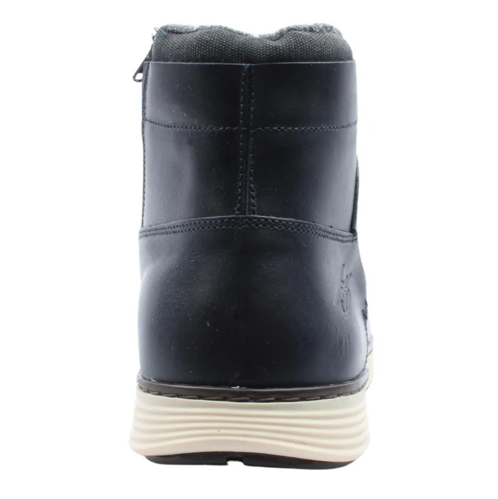These Tommy Bowe mens boots are the perfect blend of style and functionality. Crafted from a smooth navy leather upper, offering a sleek and polished look that complements any wardrobe. The combination of a classic lace-up closure and a convenient side zip provides both a secure fit and easy on-and-off.T he removable insole offers customisable comfort, allowing you to tailor the support to your needs.