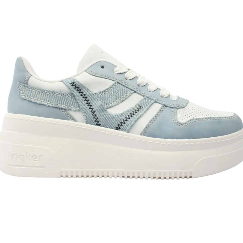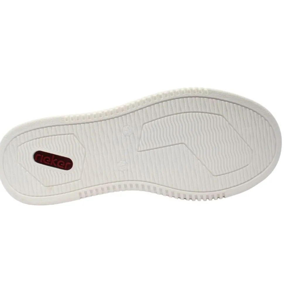 Elevate your casual wardrobe with the Rieker M7815 Platform Ladies Runner, a perfect blend of sporty elegance and unmatched comfort. Designed to keep you stylish and comfortable, this sneaker is a versatile choice for everyday wear. A crisp white base is accented with eye-catching blue detailing, delivering a fresh and contemporary look. The signature Rieker Antistress insole offers plush cushioning and optimal support for long-lasting wear. A platform sole adds height and a trendy vibe, making this sneaker as stylish as it is practical.