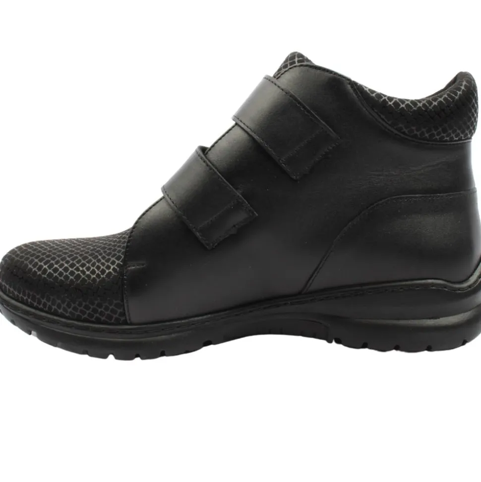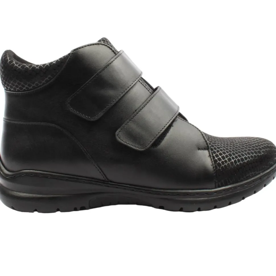 Extra wide fitting ladies boots from Softmode shoes deisgned to cater for those with sore or problem feet ensuring your feet have the space they need to feel comfortable all day long. The Softmode Marielle boots feature a 3E width and removable insole providing extra room for those who require a broader fit. The upper is a soft leather combined with a stretch material.The velcro strap and fold down tongue allow for easy on/off.