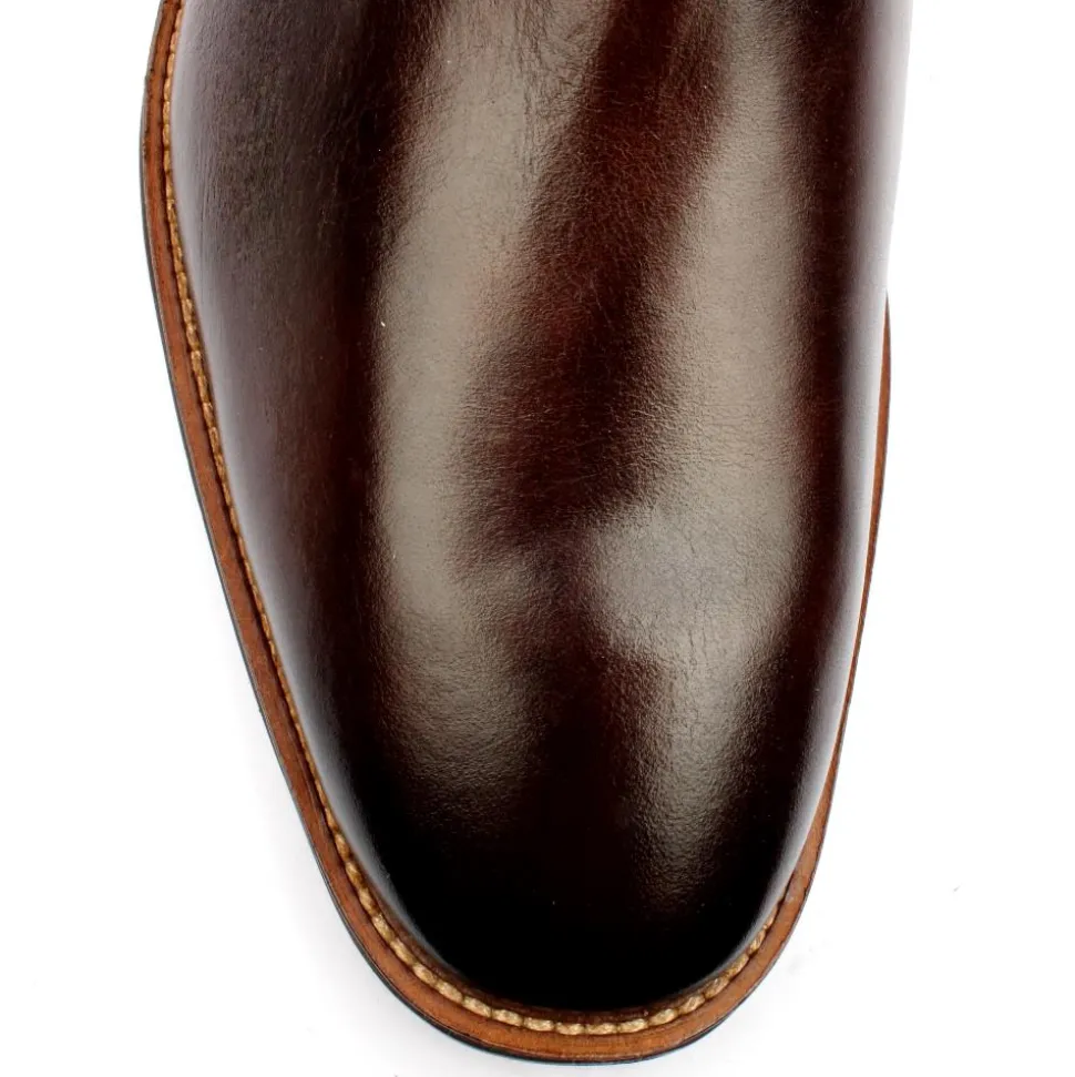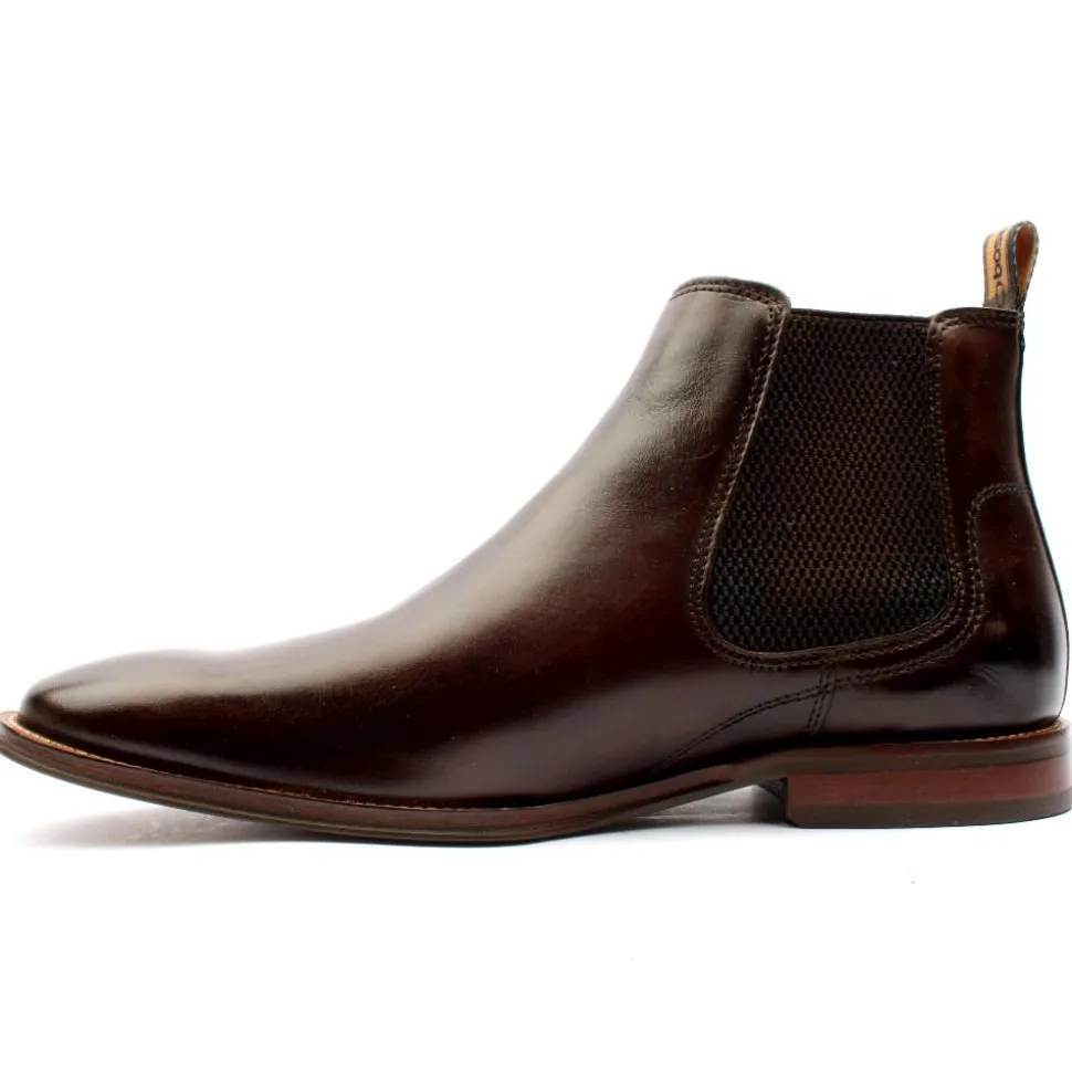 Mens chelsea boots from Base London Shoes. This slip on boot has a rich brown leather upper with brown elasicated gusstes either side and a pull on tab at the heel for easy on/off. A cushioned insole ensures underfoot comfort. This mens boot can be worn with a variety of outfits.