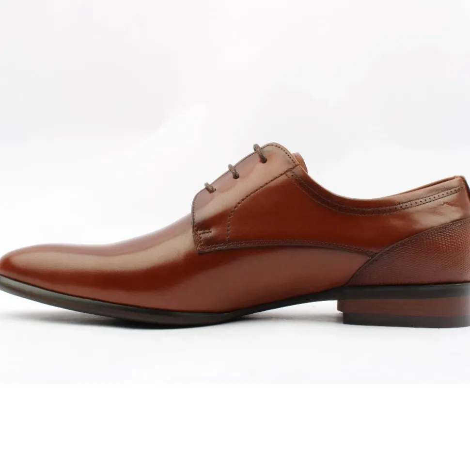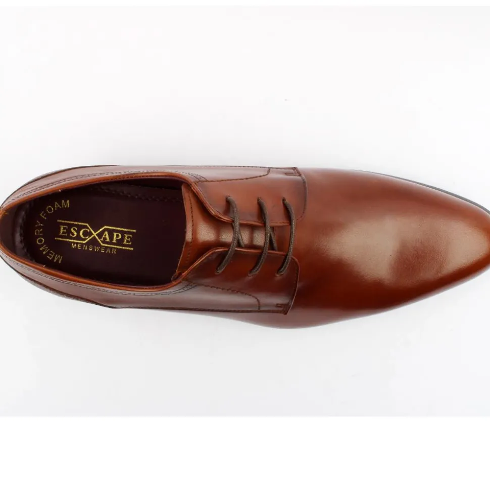 Mens suit shoes from Escape Menswear. These dressy mens shoes have a smooth tan leather upper with heel cap detailing. The padded memory foam insole adds to the comfort of this style.