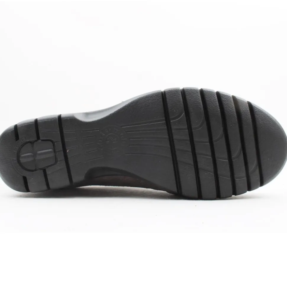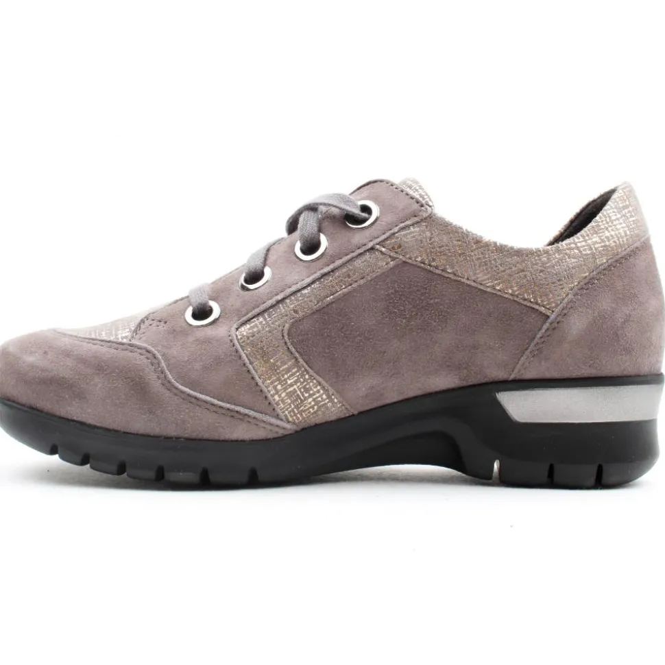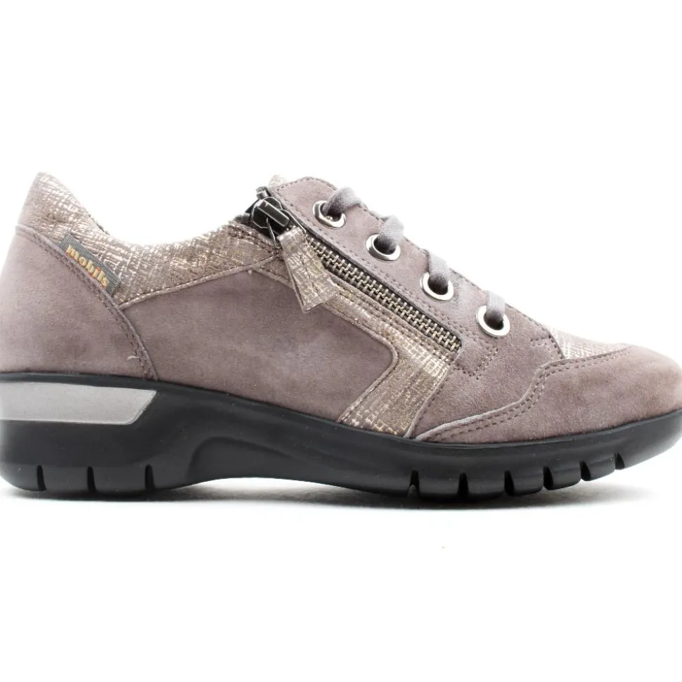 Ladies wide fitting wedge shoes from Mephisto. This shoe has a taupe combi upper with a lace and side zip closure. Fully leather lined inside, the anatomically shaped foot bed is removable to allow for extra width and depth. This makes these Mephisto shoes suitable for those with custom orthotics. Soft air technology in the insole and a shock absorber in the sole ensure optimum shock absorption.