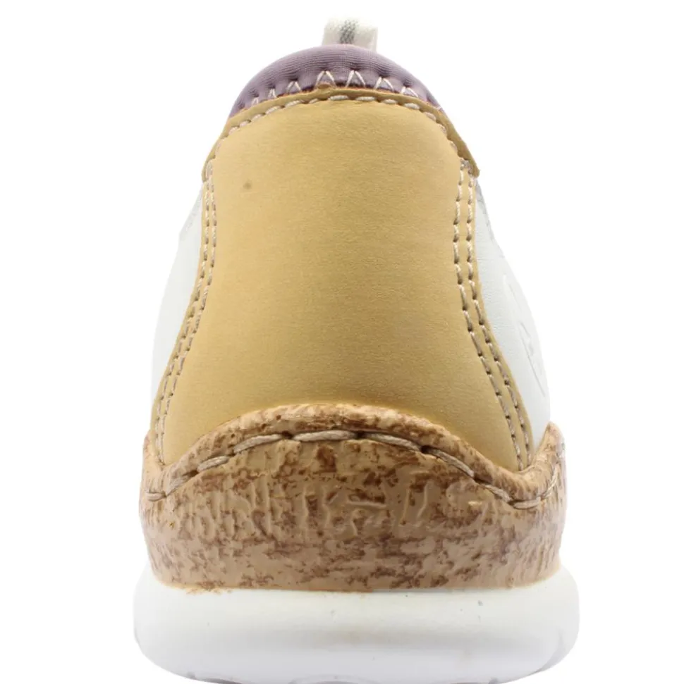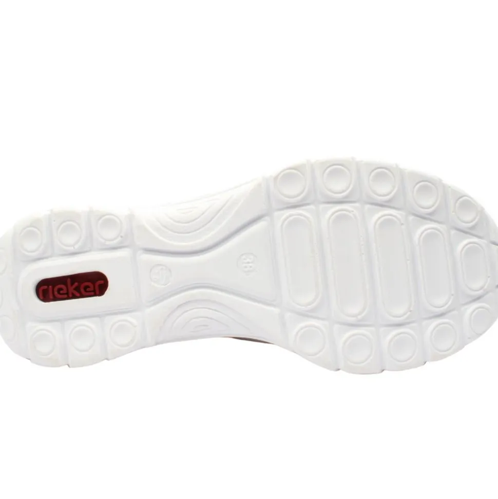 Ladies slip on shoes from Rieker shoes. These shoes are designed with a toggle to allow an adjustable fit and an easy on/off. The side zip is purely decorative. The Rieker Antistress cushioned insole adds superior comfort, making these shoes ideal for all-day wear.