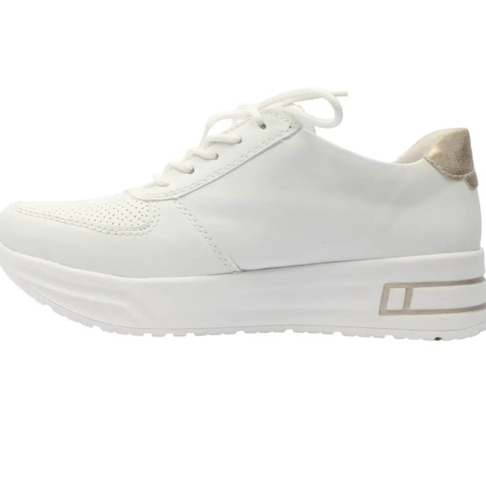 Step into effortless style and comfort with the Rieker Ladies Low Wedge Runner, N8100. A versatile and chic shoe designed for all-day wear. A Low wedge heel offers subtle elevation for a flattering silhouette. A Lace and zip closure combination ensures a secure and customizable fit, along with easy on-and-off functionality. A Removable Antistress Insole cushions every step while adapting to your foot’s natural shape for unmatched comfort. Wide fitting, ideal for broader feet.