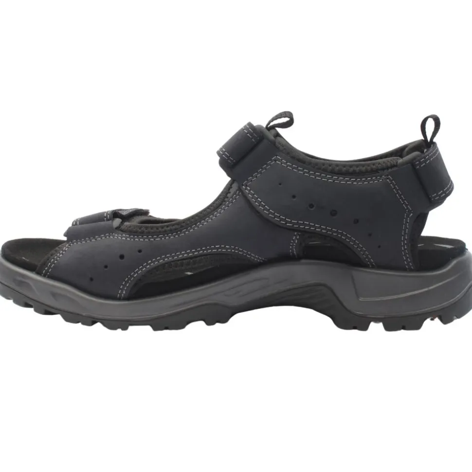 These mens Ecco sandals are a rugged outdoor sandal from Ecco Offroad range, ideal for all day active wear. The upper is nubuck with three adjustable straps for improved fit. The footbed is cushioned and shaped for all day support and comfort while the rubber outsole provides optimum traction.