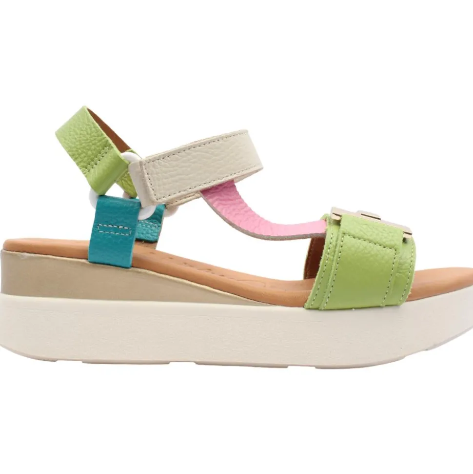Step into summer with the Oh My Sandals 5671. Featuring bright summer tones in green, beige, and pink, this eye-catching style is perfect for those who love playful footwear.The oversized gold brooch adds a touch of glamour, while the adjustable ankle strap ensures a secure and comfortable fit.