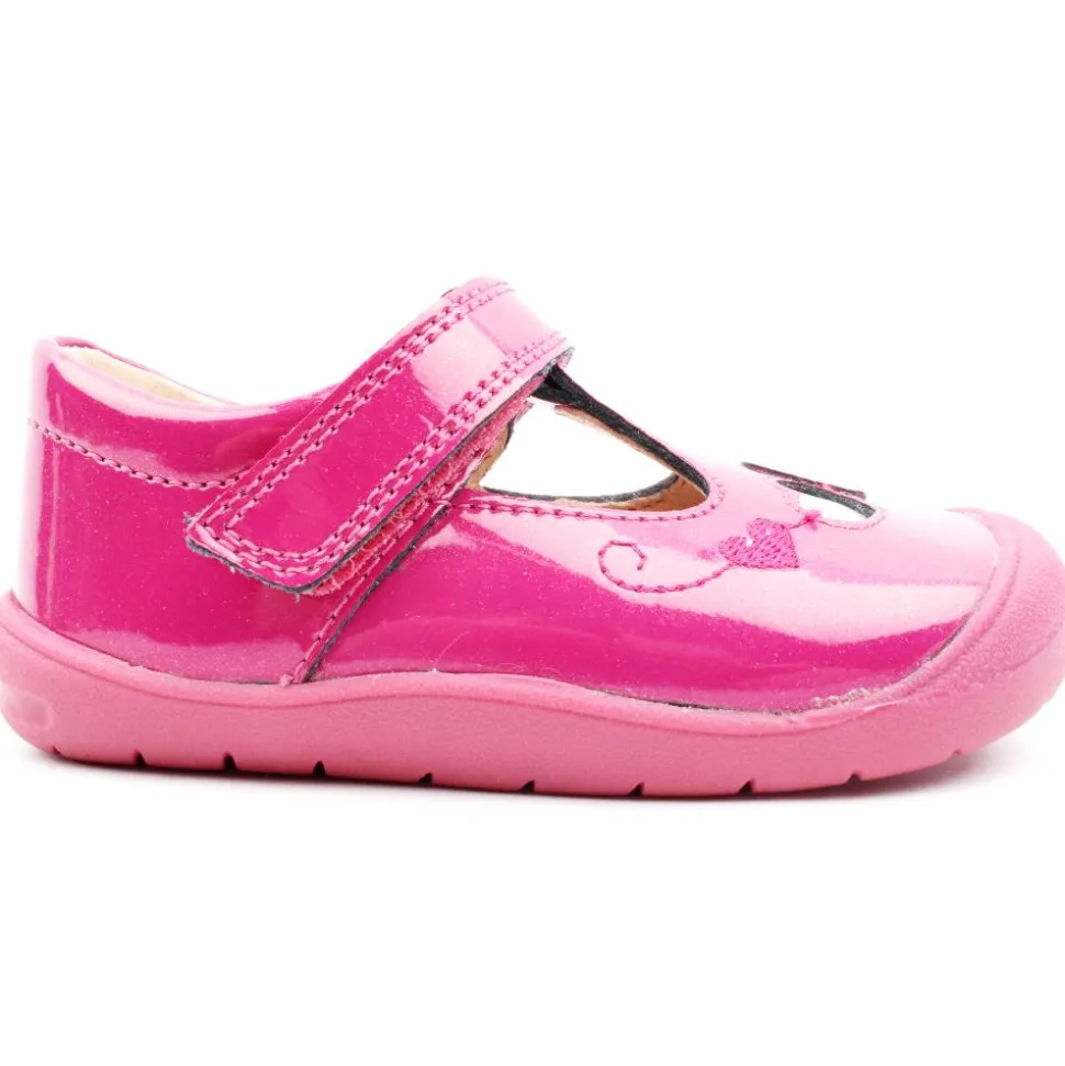 Presenting an adorable Girls’ shoe from the Startrite collection. This delightful footwear features a soft berry glitter leather upper adorned with charming love heart detailing at the front. Equipped with a convenient velcro strap closure for hassle-free on/off, ensuring a secure fit. Additionally, a padded toe bumper adds protection to the front of the shoe. With a leather lining and padded collar, this shoe offers enhanced comfort for your little one’s feet.