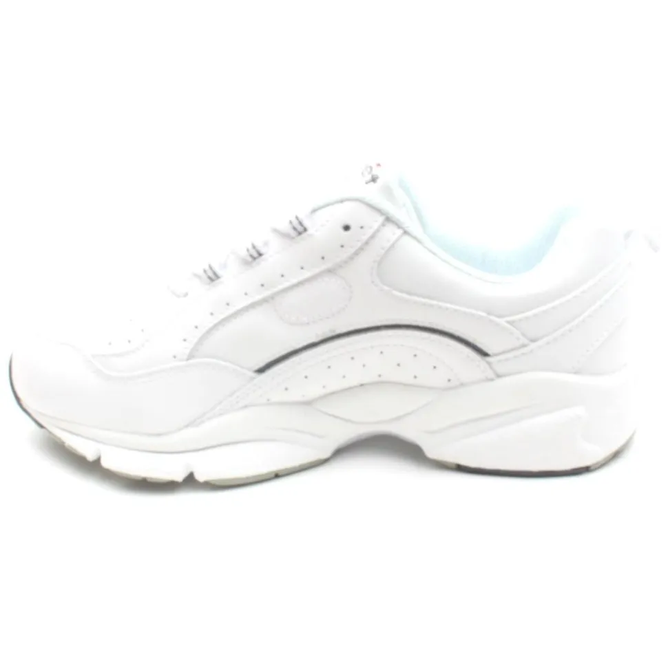 Sporty style everyday trainer from the Propet collection. This style has a white smooth upper with a grey panel detail. This trainer has a removable insole.