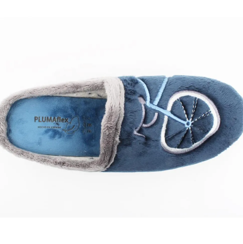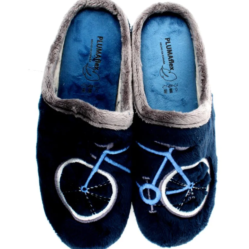 Mens Slippers from Plumaitex. These Mens Novelty Mules have a bicycle across the front, Fresh Eucalyptus Scented smell, Cushioned memory foam insoles, fleece uppers & durable outsoles. Idea Christmas Gift