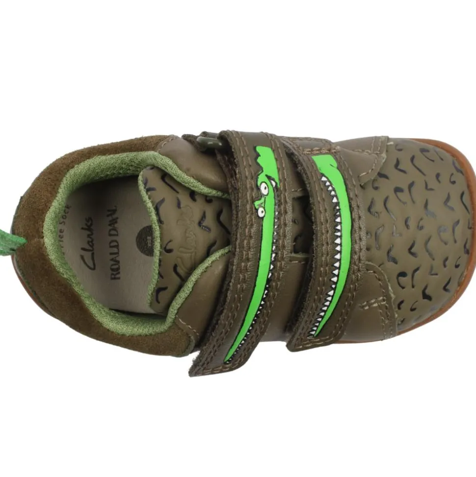 These Clarks prewalkers shoes support every shuffle and wobble as your little one begins their journey towards those brave first steps. The Velcro strap keeps the shoe secure on the foot while breathable materials protect tiny toes, and thin, flexible soles help smaller feet move organically and get used to the ground beneath them. This prewalker is inspired by Roald Dahls childrens book The Enormous Crocodile.