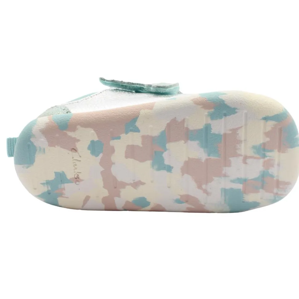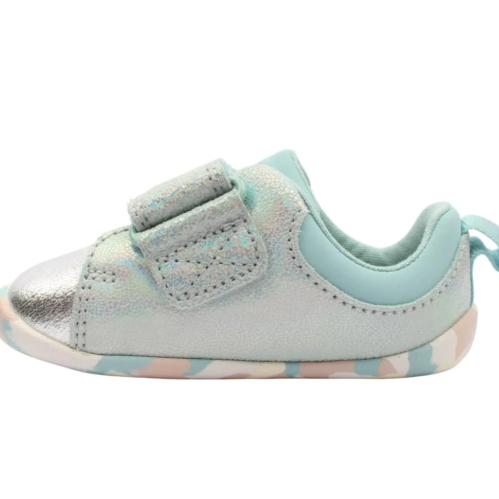 These Clarks prewalkers shoes support every shuffle and wobble as your little girl begins their journey towards those brave first steps. The Velcro strap keeps the shoe secure on the foot while breathable materials protect tiny toes, and thin, flexible soles help smaller feet move organically and get used to the ground beneath them. These Clarks prewalkers have a gorgeous mermaid tail design.