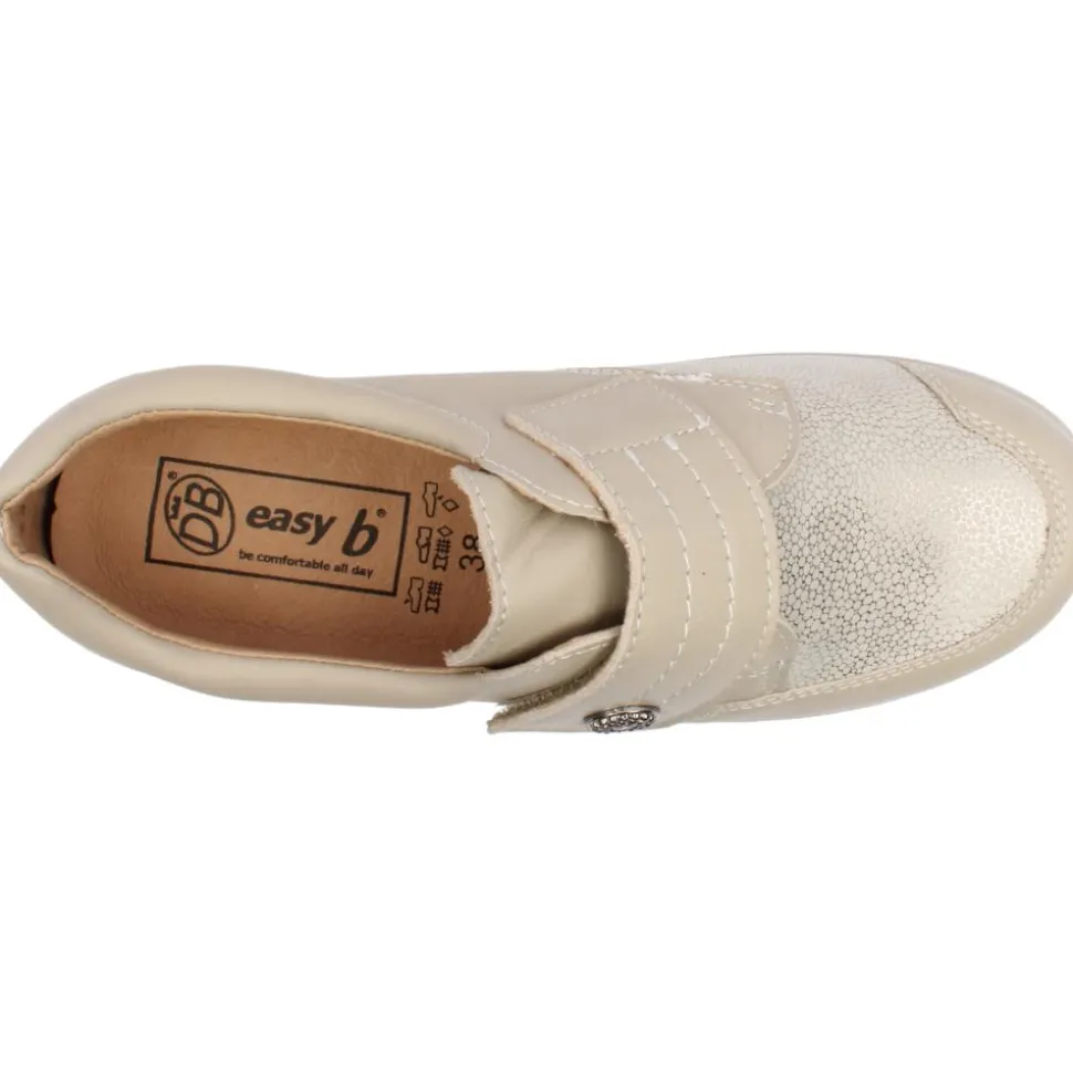 Ladies wide fitting Shoes from DB shoes. These Ladies Shoes have single Velcro straps with a fold down tongue for easy on & off. They are a “2V” Fitting which fits an EE-4E Fitting Foot. They have removable cushioned insoles which makes them deeper if required.