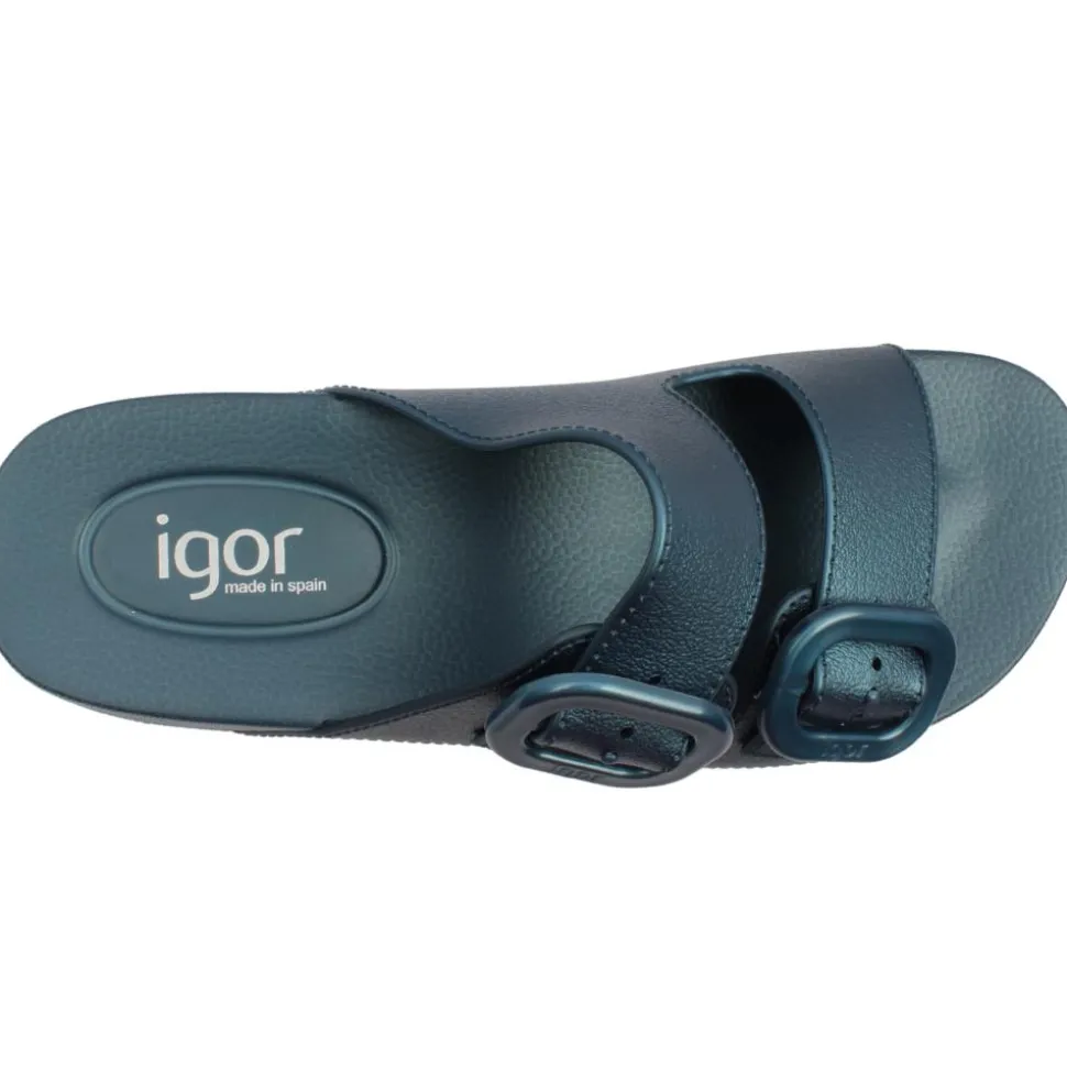 Women’s sandals from Igor shoes. Step into comfort with lightweight and flexible sandals. Designed with a sleek blue upper and double buckle closure allowing an adjustable fit.
