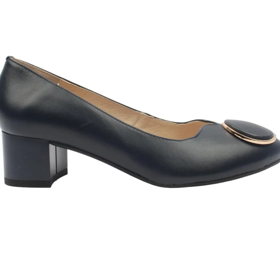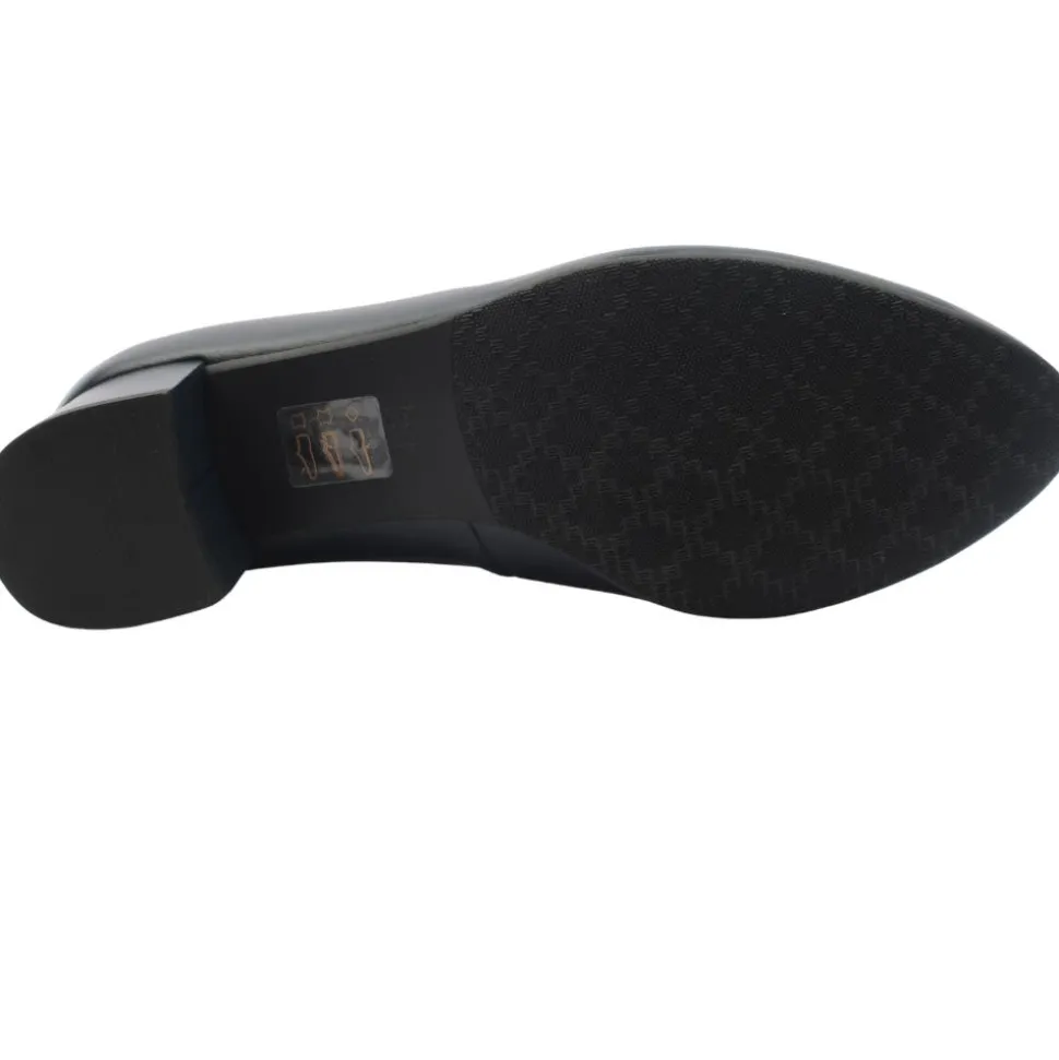 The Emis S8055 Court Shoe is a perfect blend of elegance and comfort. Featuring a rounded toe with a unique heart-shaped opening, this shoe is adorned with a large button detail accented with gold detailing, adding a touch of sophistication. Designed for all-day wear, it boasts a cushioned leather insole and a flexible rubber outsole for superior comfort. Whether for work or a casual outing, the Emis S8019 offers both style and support in one stunning package.