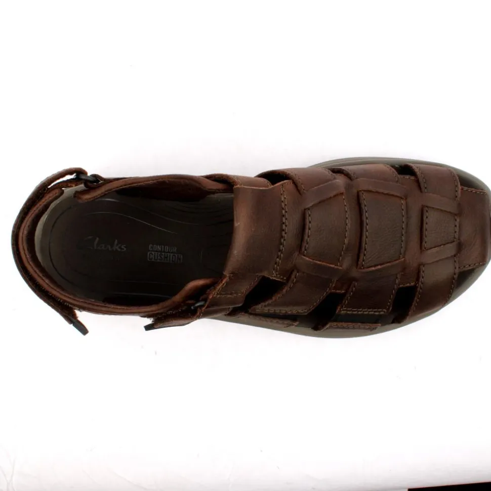 Introducing the Clarks Men’s Closed Toe Sandal, Saltway Cove. Crafted with premium dark brown leather, these sandals boast a timeless appeal that effortlessly pairs with any casual or outdoor ensemble. T hese closed-toe sandals offer protection and support while allowing your feet to breathe during warmer weather. Featuring Clarks’ renowned Contour Cushion insole, these sandals provide exceptional comfort and support with every step. Say goodbye to fatigue and discomfort as the cushioned footbed molds to the contours of your feet, ensuring superior comfort throughout the day. With a G Standard fitting, these sandals offer a comfortable and secure fit for most foot shapes. The two adjustable straps allow for a customized fit, ensuring stability and support with every stride.