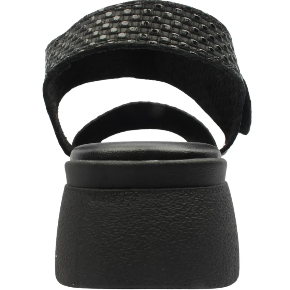 Women’s sandals from Valeria’s shoes. This sandal sits upon a platform sole offering stability and optimal comfort. The insole is Valeria’s own comfort total insole allowing all day long wear. The Velcro strap allows an adjustable fit for anyone.
