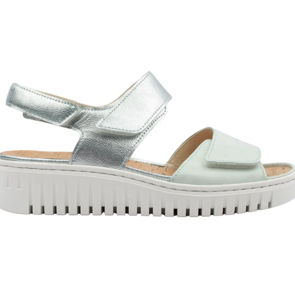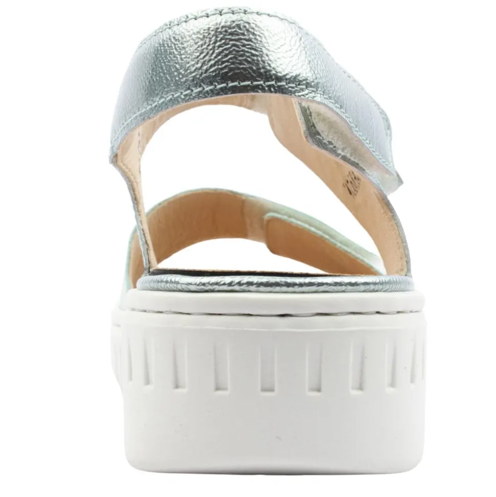 The Waldlaufer 955001 wide fitting sandal in mint is the perfect addition to your Summer wardrobe. It features mint leather straps, offering a sleek and eye-catching appearance. The sandal has adjustable velcro straps, allowing for a customised fit & for convenience. The sandal incorporates features such as a cushioned removable footbed ensuring all-day comfort & flexible sole.