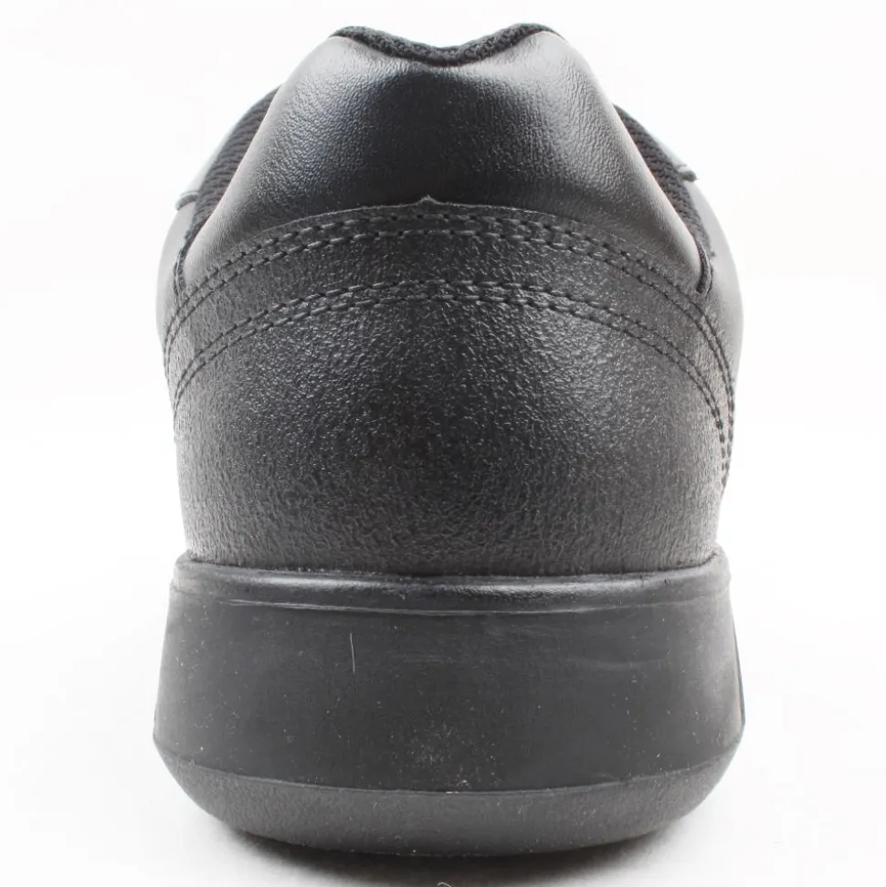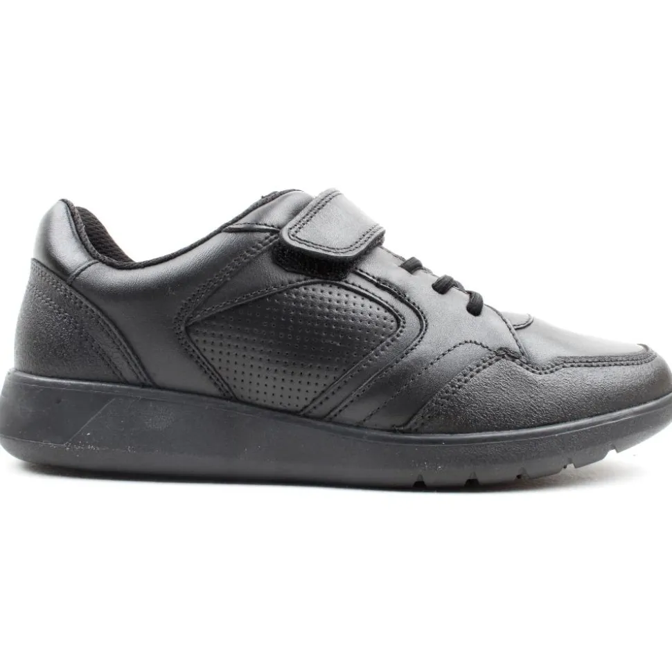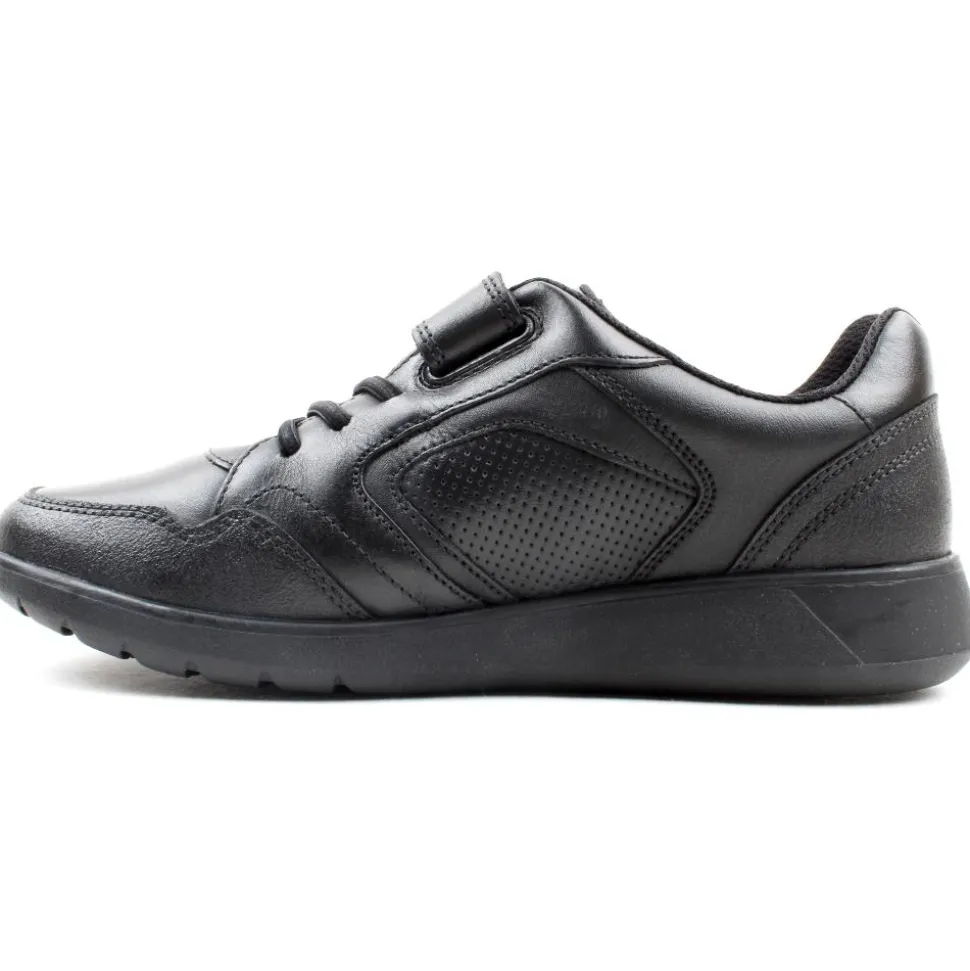 Boys Black Shoes from Clarks. These Boys Back to School Shoes are designed using a soft leather upper with elastic laces & single velcro straps for easy on & offf. Insoles made from 50% recycled content.