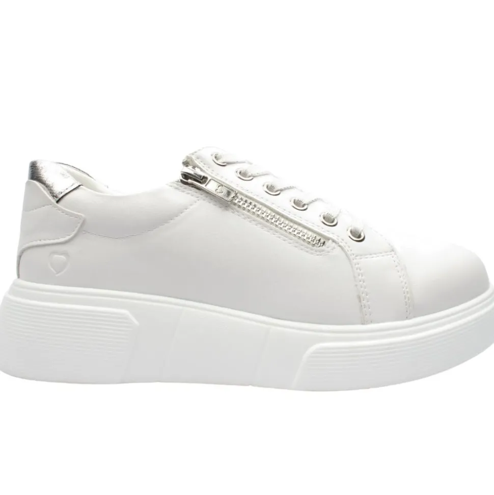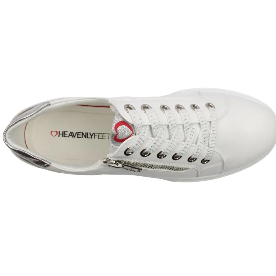 Elevate your everyday style with the Heavenly Feet Shelby, the perfect blend of fashion, function, and all-day comfort. Featuring a chunky platform outsole, this ladies trainer adds just the right amount of height while keeping your feet supported and comfortable. Designed for convenience and versatility, includes both lace-up detail for a stylish edge and a side zip for quick and easy on-and-off wear. Whether you’re dressing up denim or adding attitude to a casual dress.