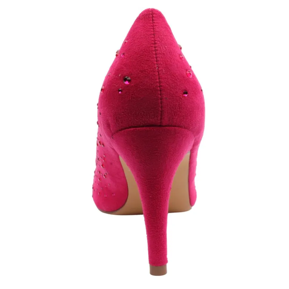 Dressy high heel court shoes from Sorento. Add a touch of glamour to your wardrobe with the Sorento High Heel Court Shoes . Crafted from elegant pink faux suede , these shoes feature a chic pointed toe design that elongates the leg and adds a sophisticated element to any look. The upper is beautifully adorned with sparkling pink gems , creating a dazzling effect that catches the light with every step