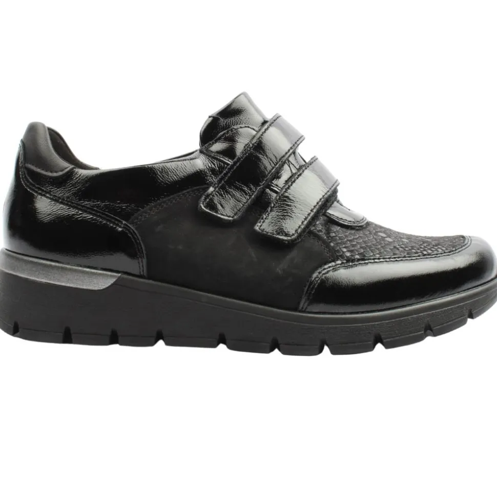Ladies wide fitting shoes from Waldlaufer Shoes This style has a combination upper with a soft stretch material at the toe box. The velcro strap closure alows for easy on/off. They have cushioned removable insoles and are a “K” Extra Wide Fitting.