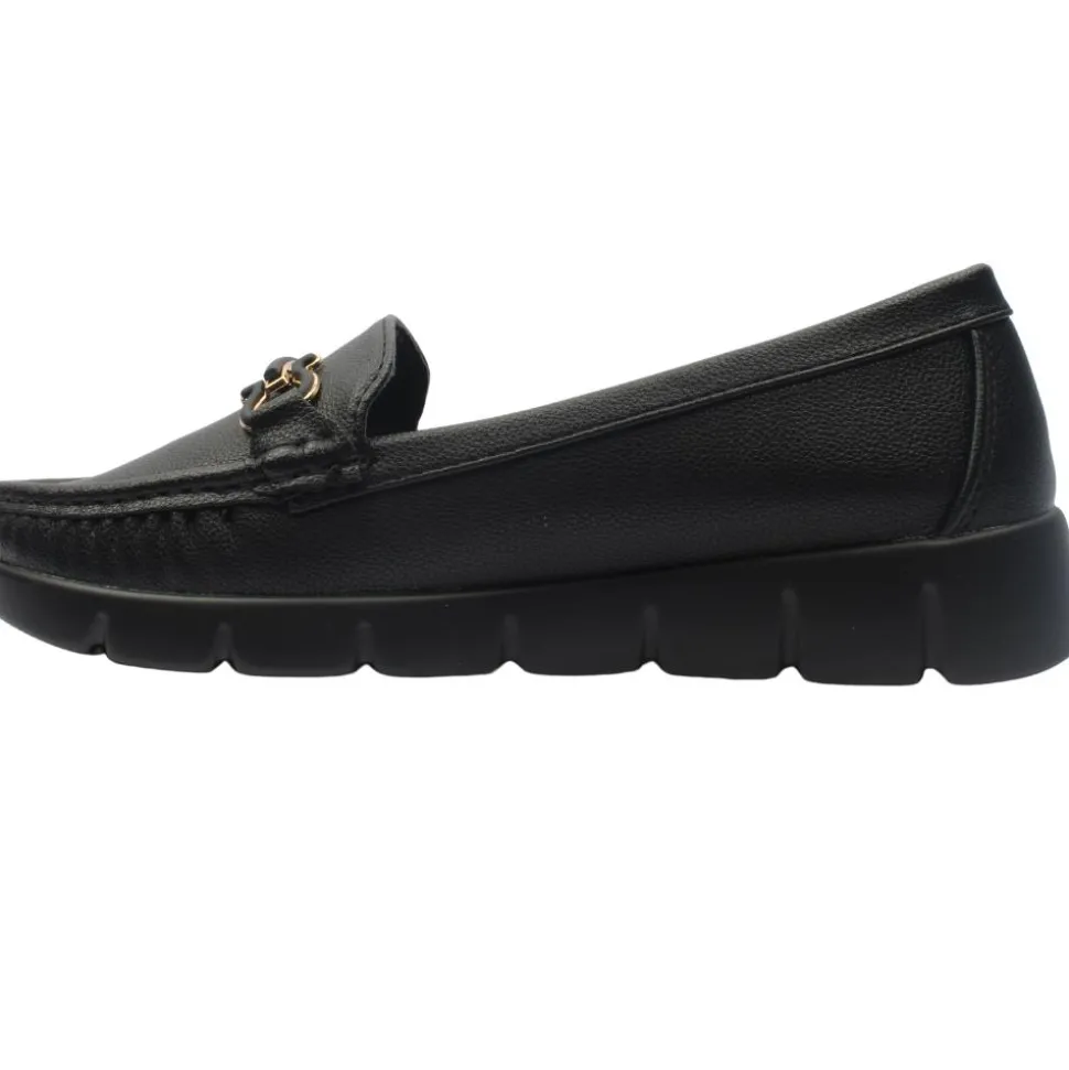 These l adies loafers in a black upper are a stylish and versatile choice. Whether you’re pairing them with a work or a casual outfit, they can add a touch of style to your look. Cushioned insole for all day comfort.