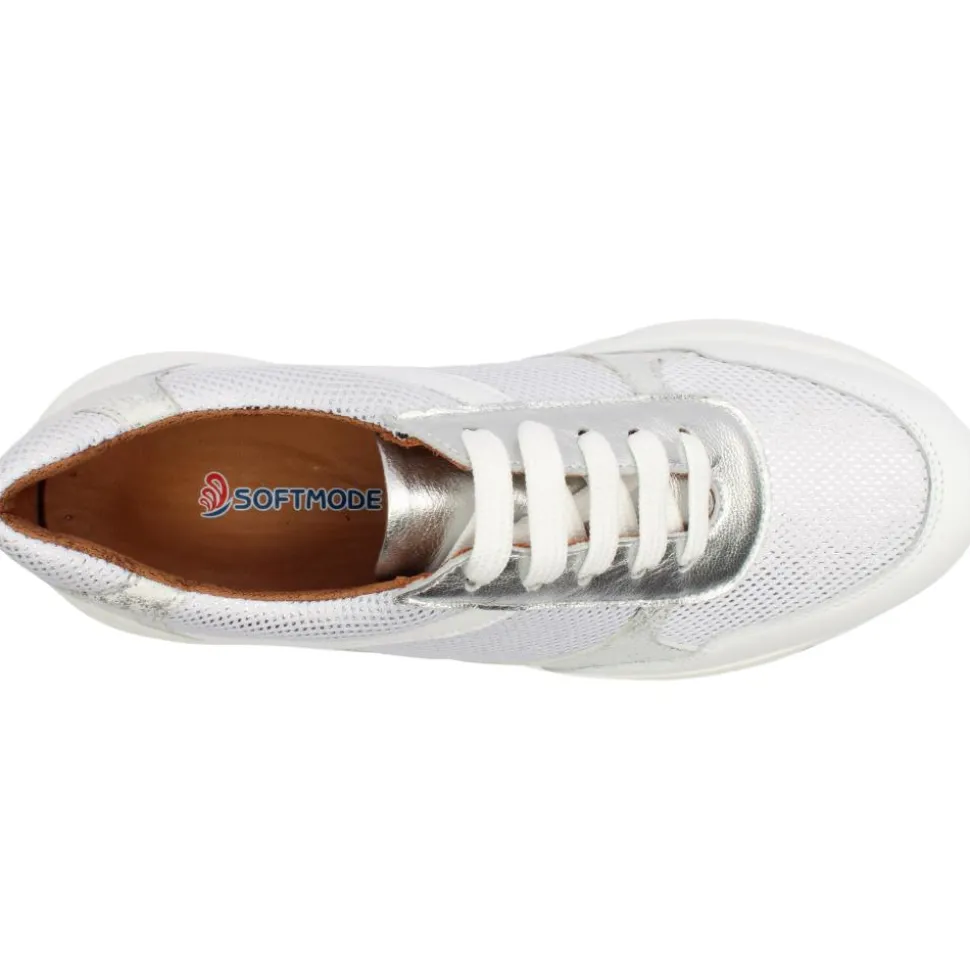 Step into effortless comfort with the Softmode Softstep, a stylish and supportive 3E wide-fitting runner designed for all-day wear. Featuring a lightweight upper in a beautiful mix of white and silver shades, this trainer blends fashion with function. A 3E Wide Fitting offers a spacious, comfortable fit, ideal for wider feet. The Removable Leather Insole is Soft, cushioned, and breathable, with the option to use custom orthotics. The Lightweight Upper ensures easy movement and enhanced comfort. The Flexible Outsole provides shock absorption and excellent grip for all-day stability.