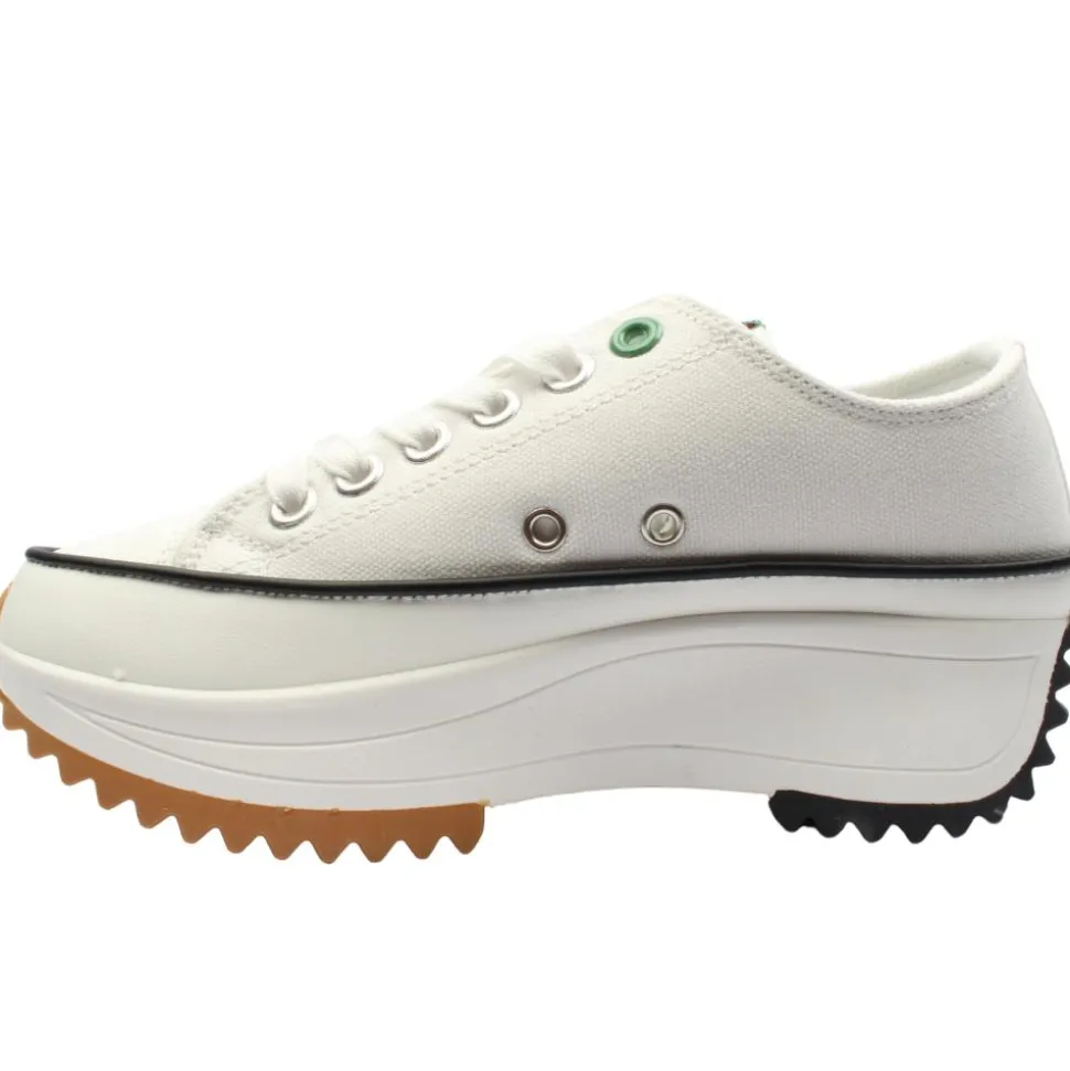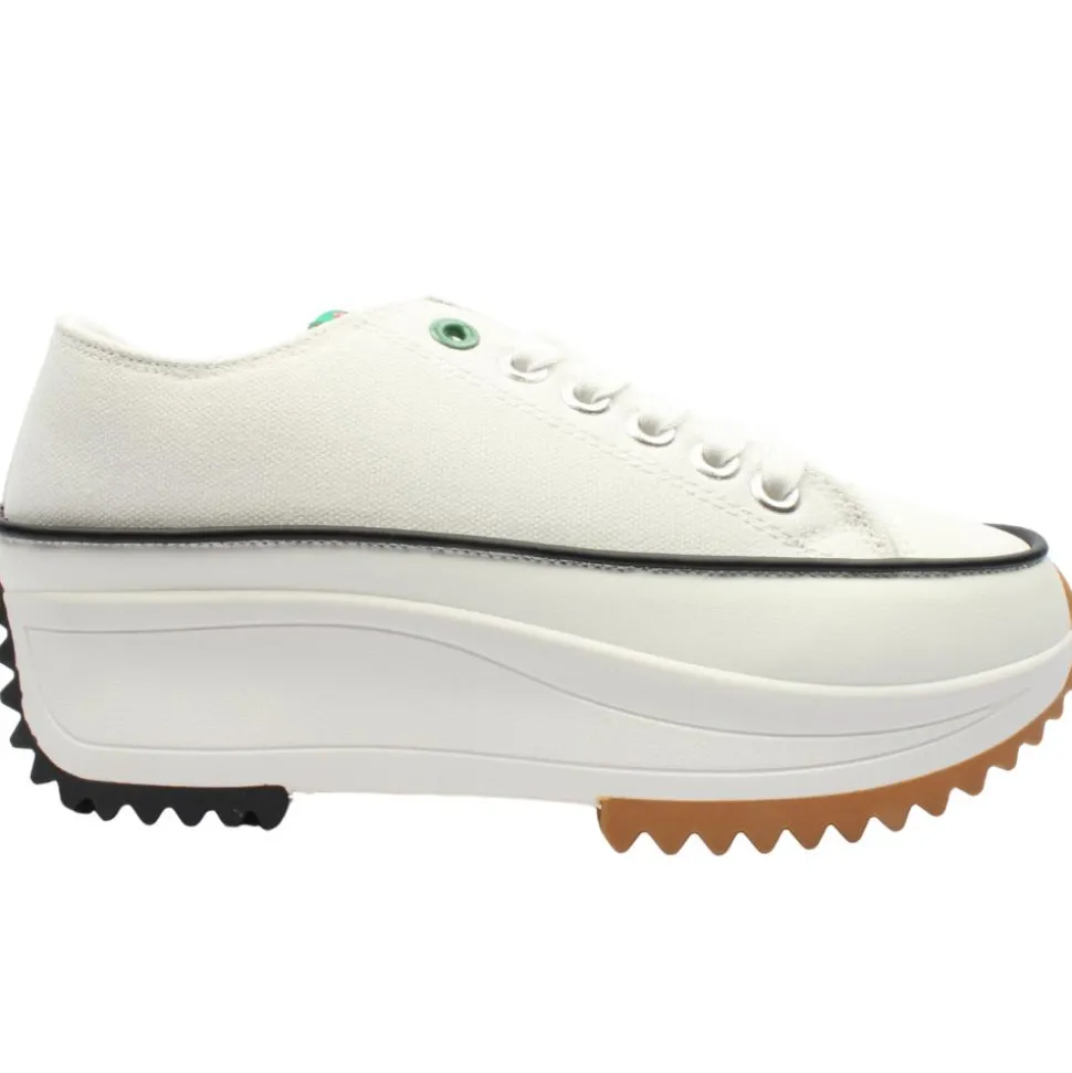 Ladies Converse inspired trainers from Heavenly Feet shoes. This shoe has a padded insole and a platform sole which adds to their comfort. This shoe is Vegan friendly.