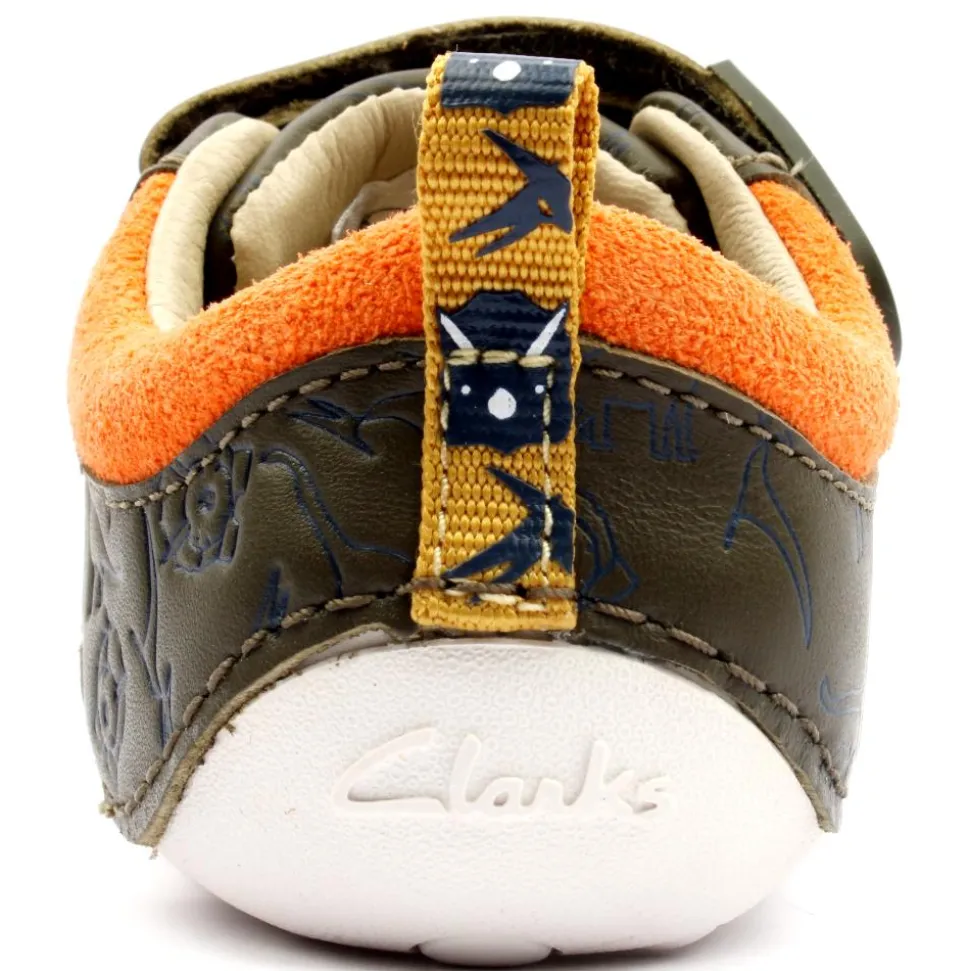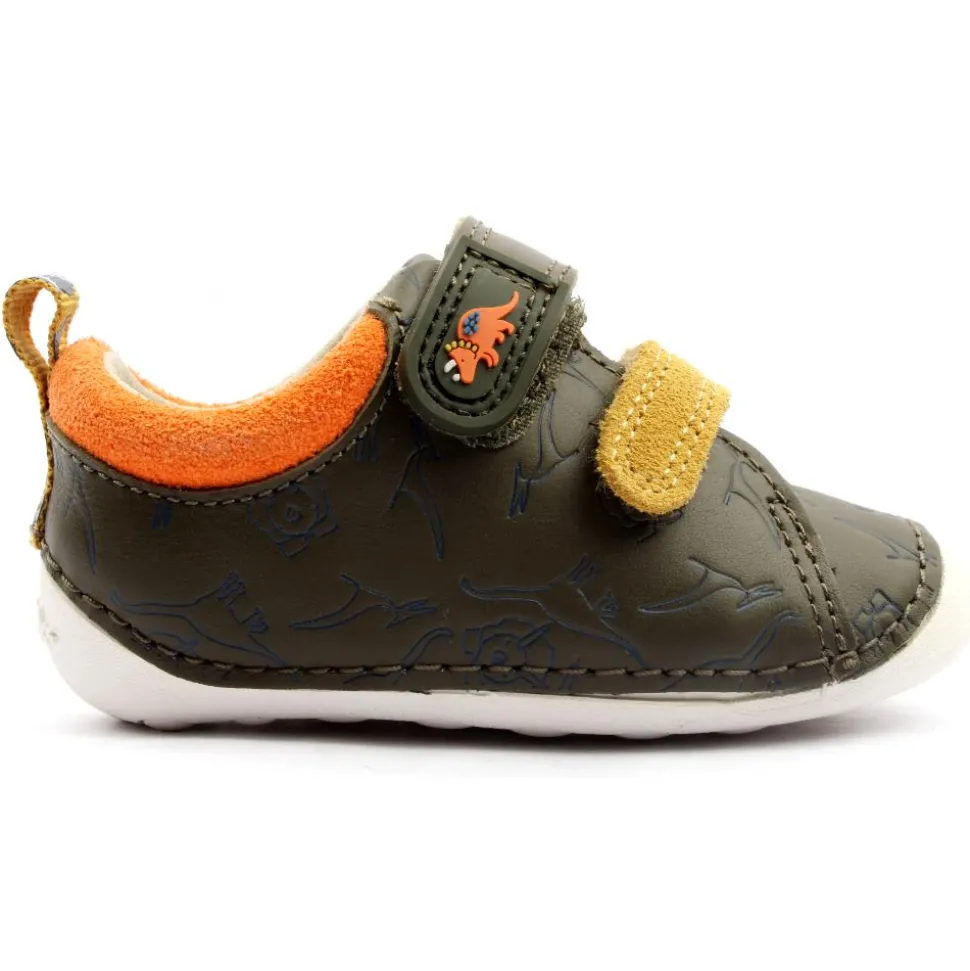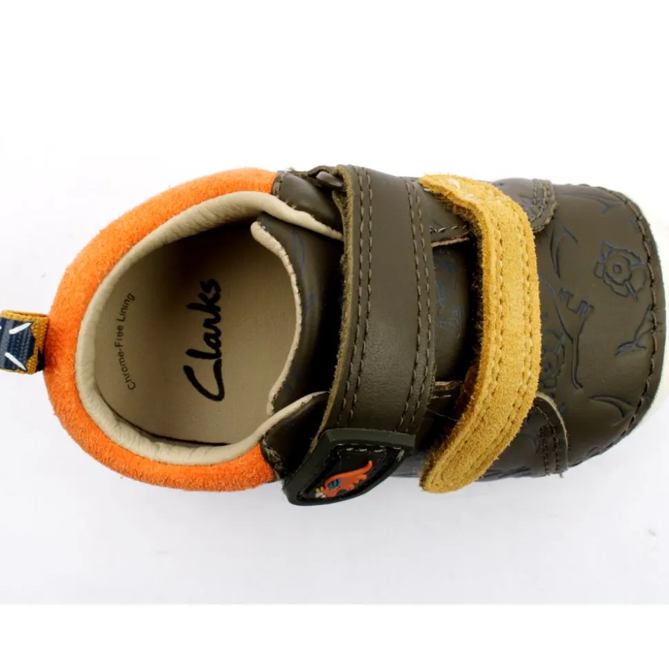 Tiny Rex T from Clarks was specially created for tiny toes.This dinosaur inspired pre-walker shoes are made from a premium soft leather. The double velcro straps offers a secure fit while the rubber sole is lightweight & flexible whilst offering grip.