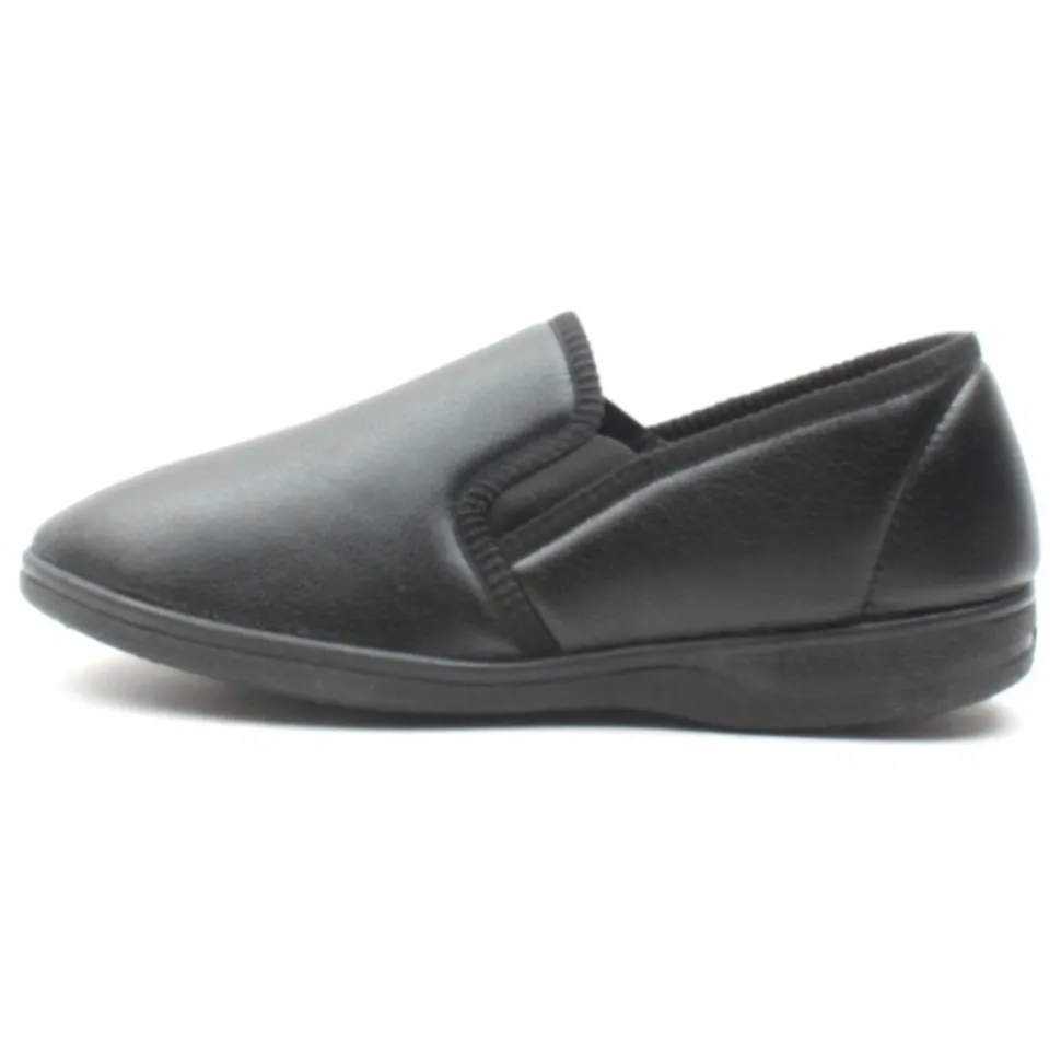 An everyday slipper from Goodyear, the upper is imitation leather while the lining is cosy textile. Elasticated gussets on either side allow for easy on/off.