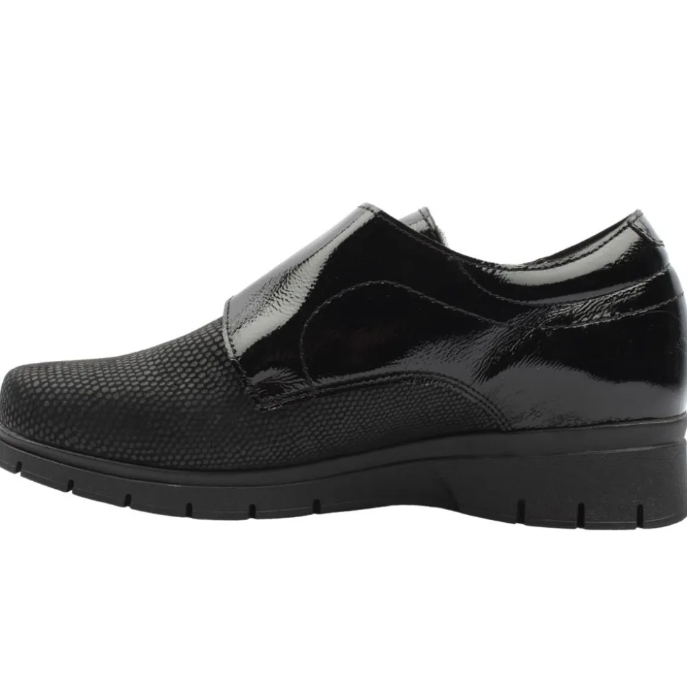 Casual ladies shoes from the Valerias comfort shoes range offering all day cushioned comfort.These shoes have a velcro strap and a fold down tongue & soft stretch fabric upper allowing for easy on/off. These ladies comfort shoes feature a removable, padded insole which offers cushioned support, making them ideal for all day wear.They have a flexible non slip sole.