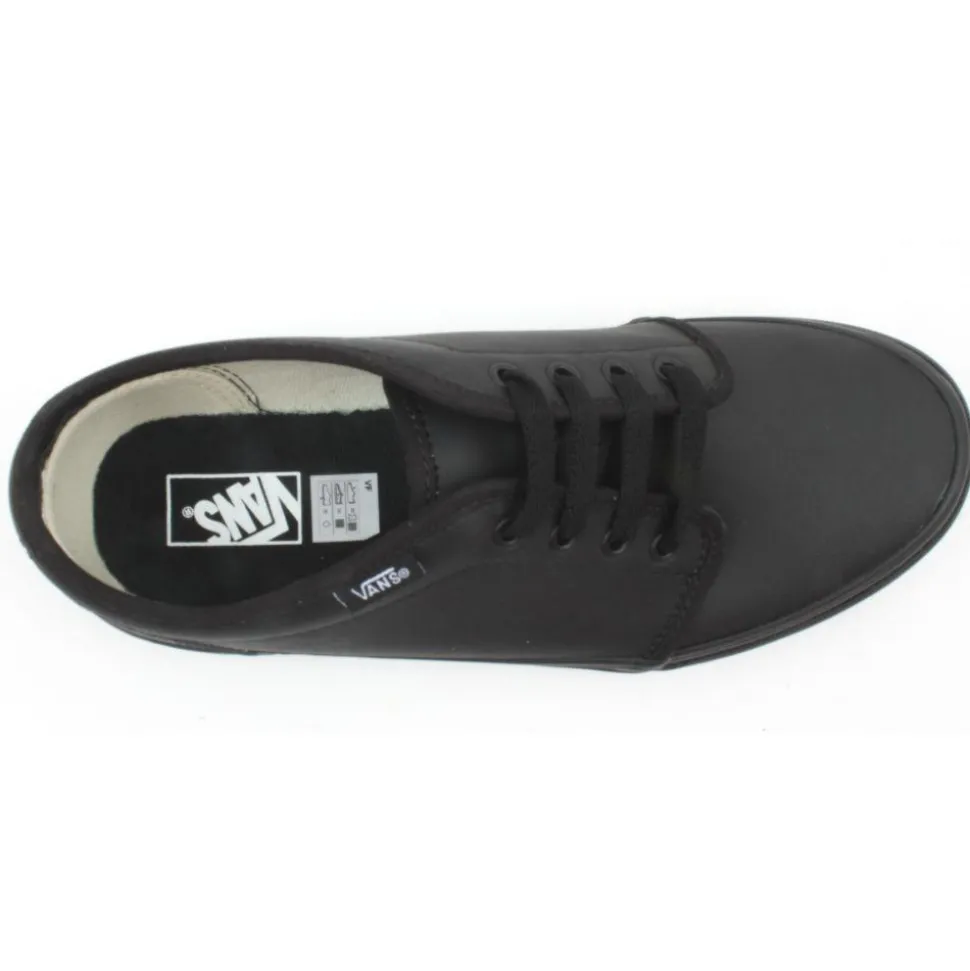 The shoe features a simple low top, lace-up with durable leather upper, metal eyelets and Vans original Waffle Outsole. This shoe is perfect for school wear!