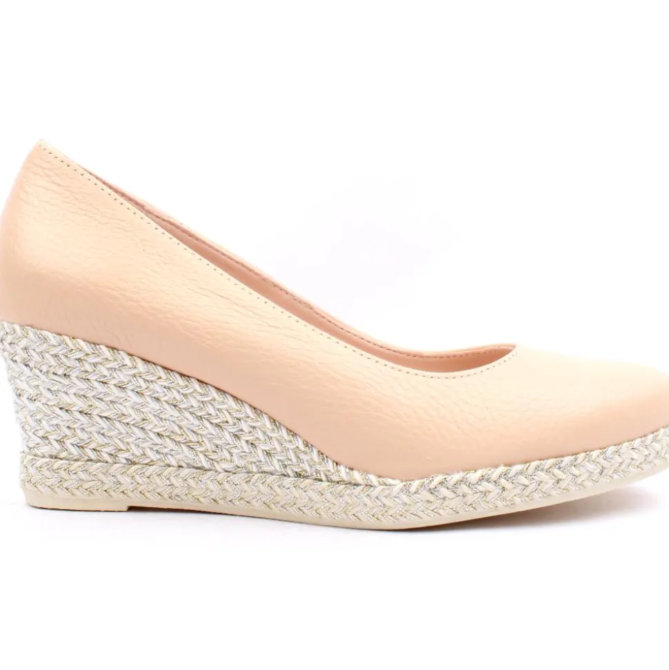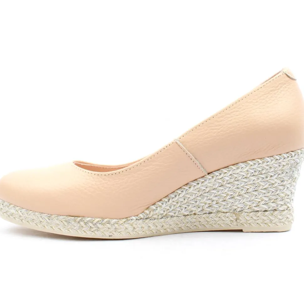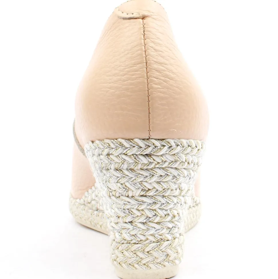 Presenting an elegant wedge shoe from the Jose Saenz collection. Crafted with a delightful soft nude (coral) leather upper, it gracefully rests on an espadrille wedge sole. This shoe is lined with leather and features a padded insole, ensuring an extra layer of comfort for every step.